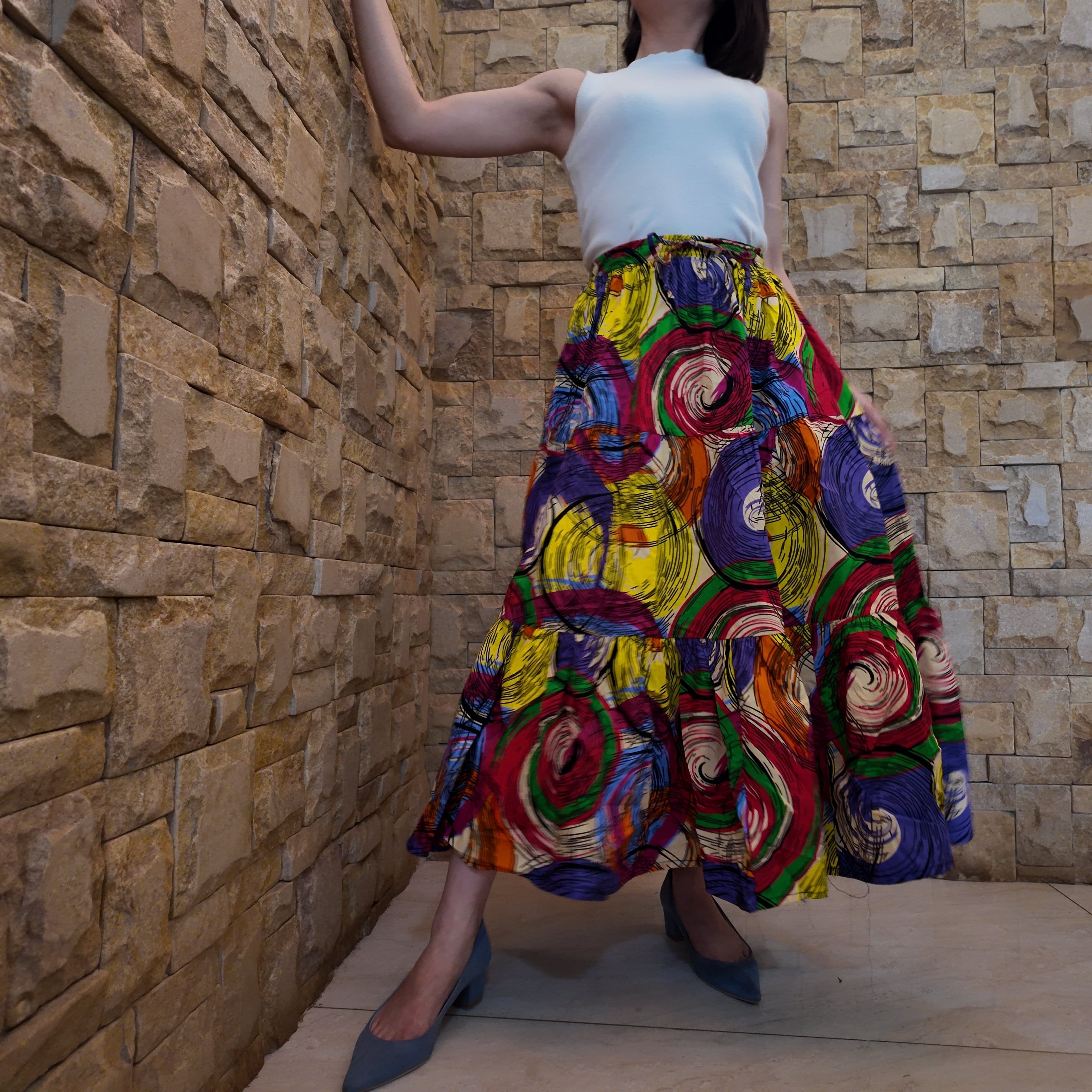 アフリカン Happy skirts アフリカ布をケニアのテーラーが丁寧に3段のティアードスカートに仕立ててくれました。買い物を通してちょこっとケニアとつながる