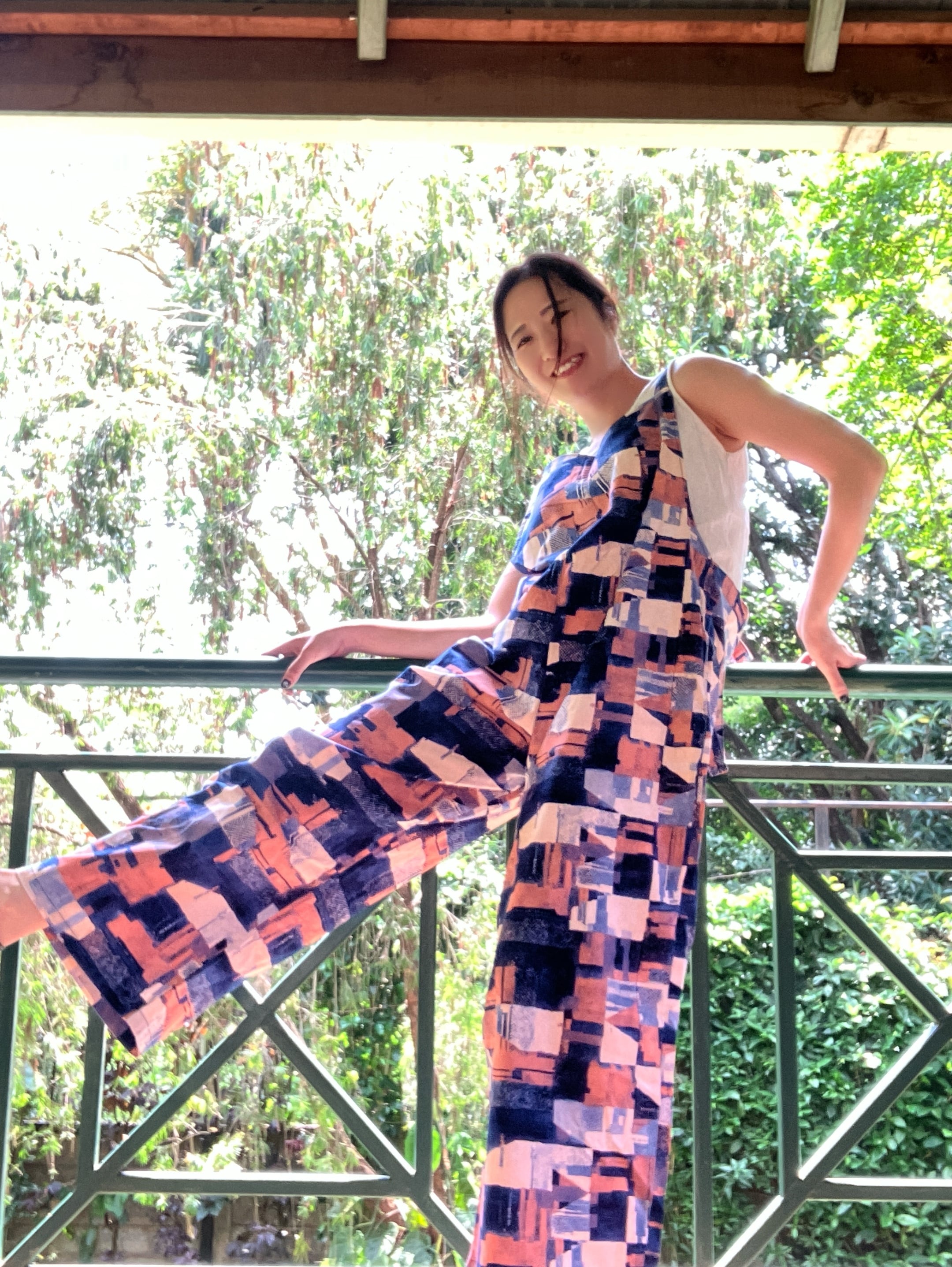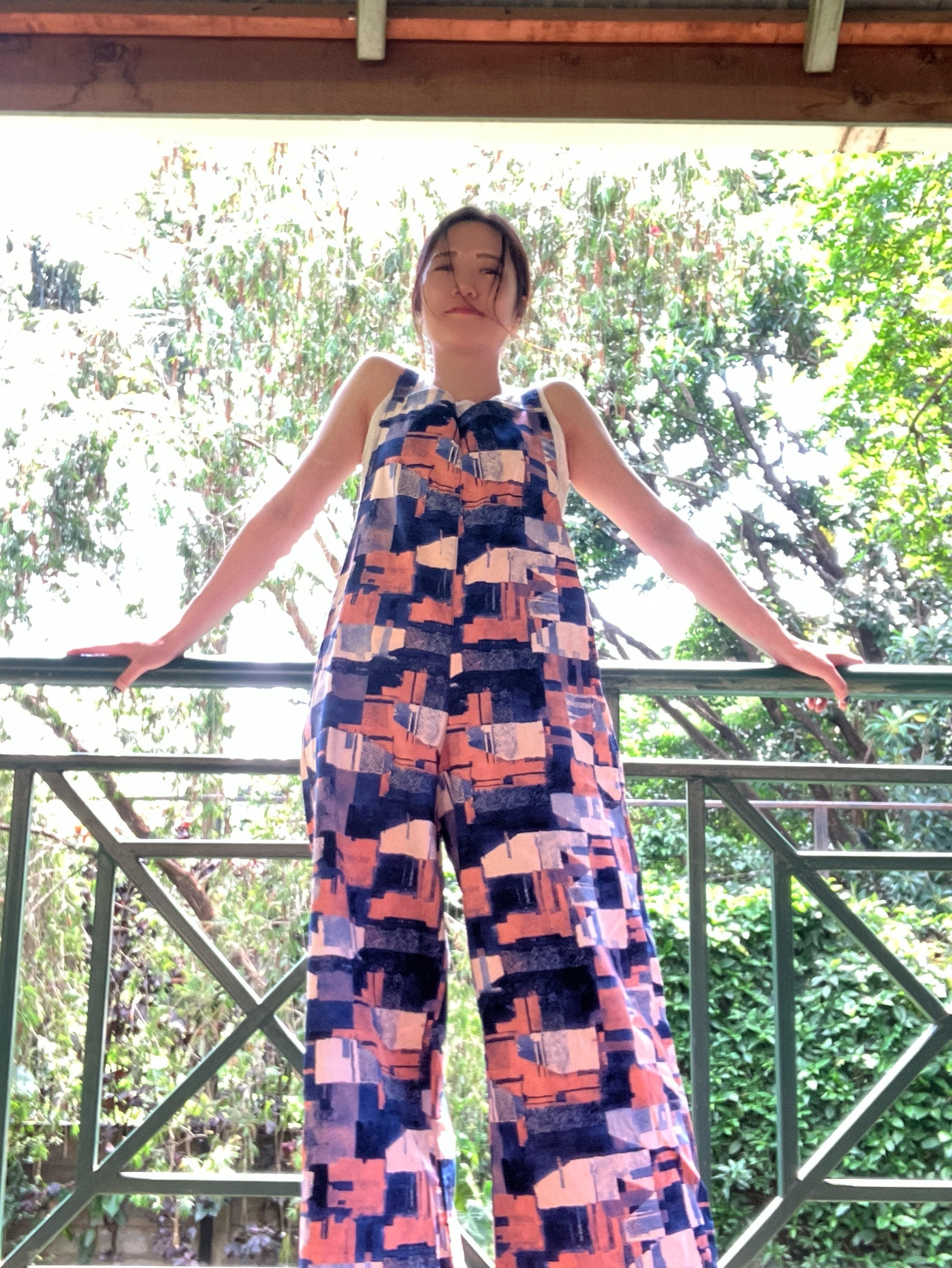 肩の紐を背中に回してリボン結びするだけの、簡単かわいいサロペット!