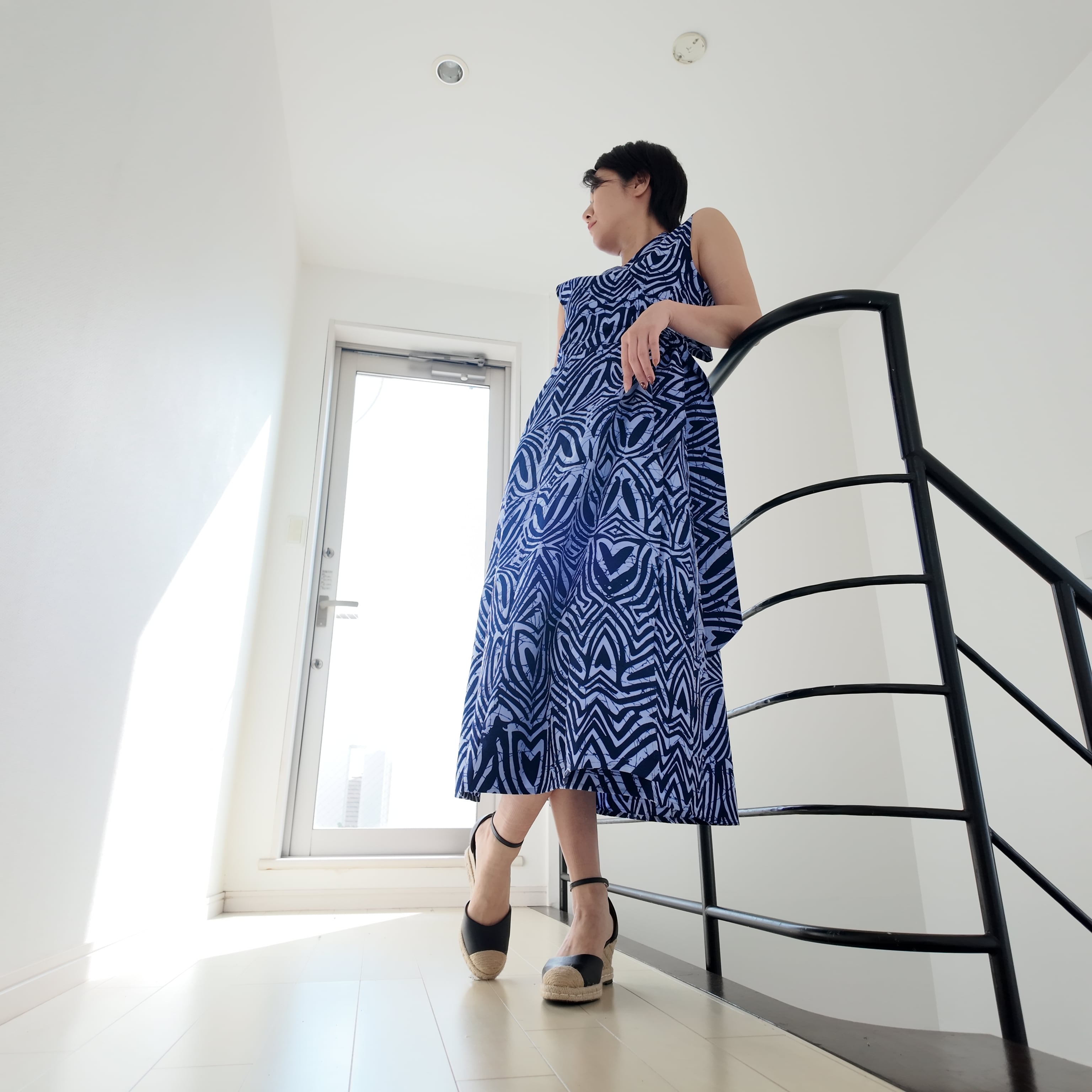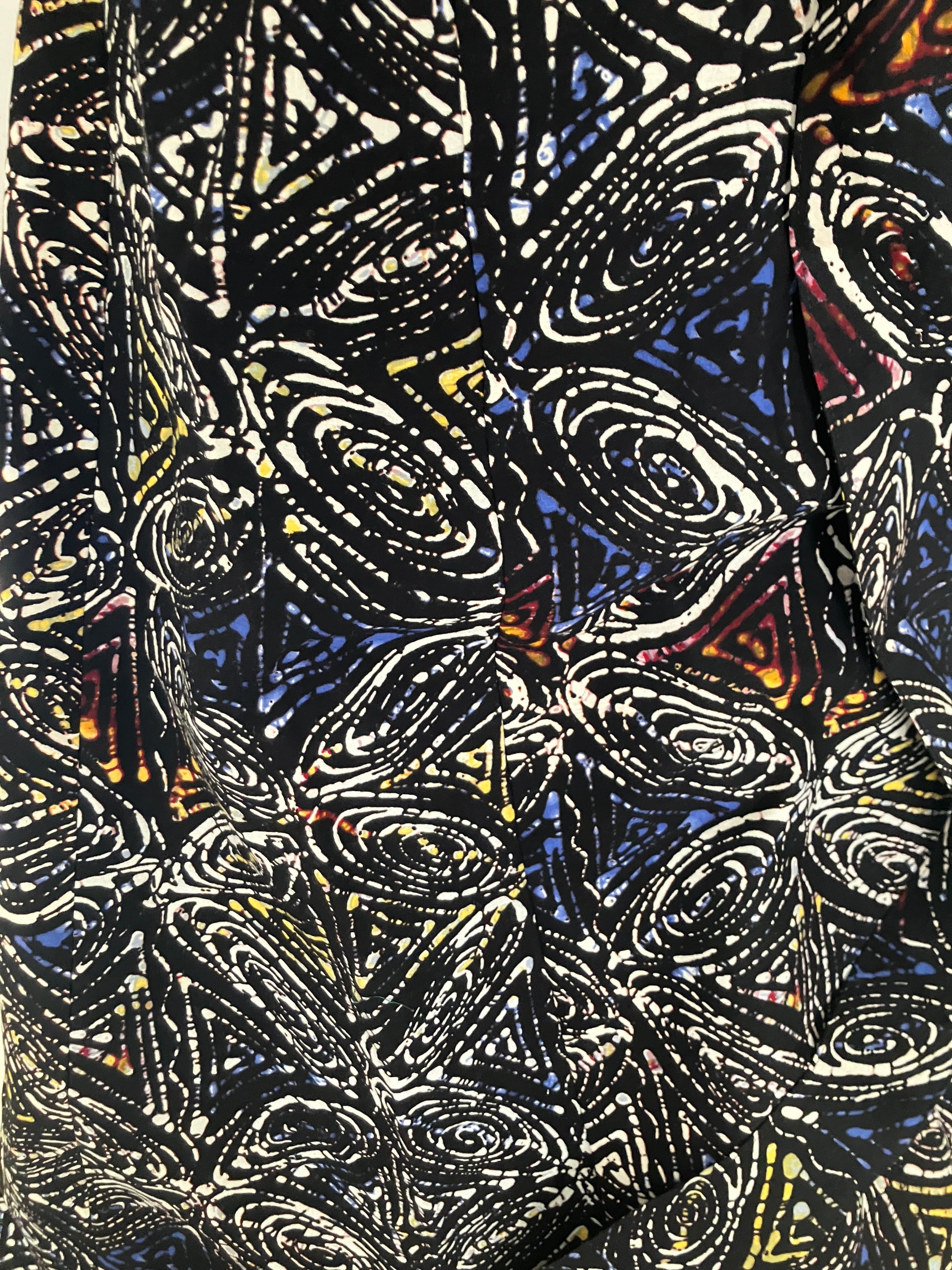 今回の7点は代表がセレクトした着用しやすい色柄のみを集めたもの。ジャケットを着てお仕事にも行けるようなやや色が落ち着いたセレクトです。落ち着いた色でありながら、差し色が入っていたり、柄がおもしろかったり。そんなアフリカ布を楽しんでいただけます。