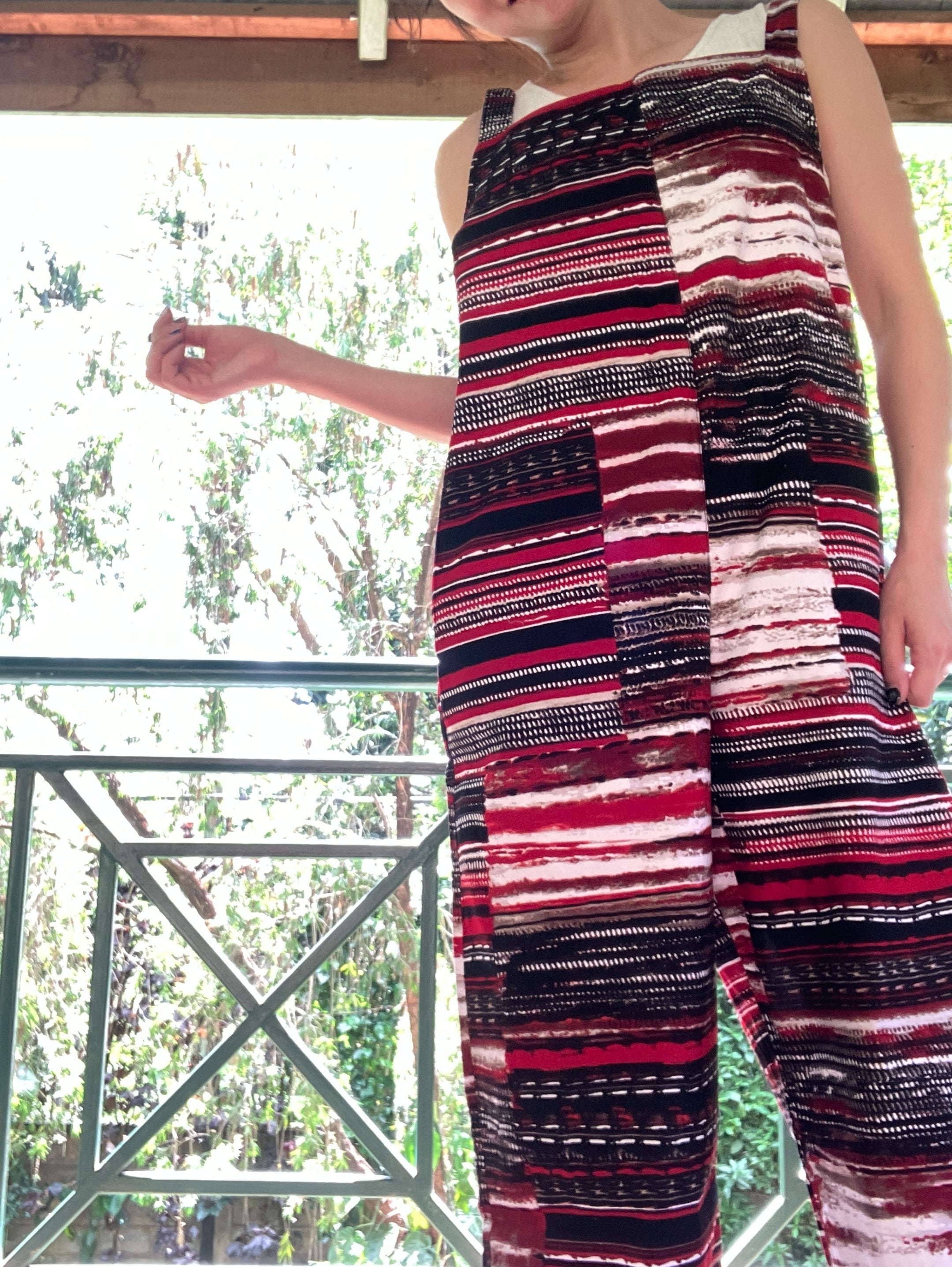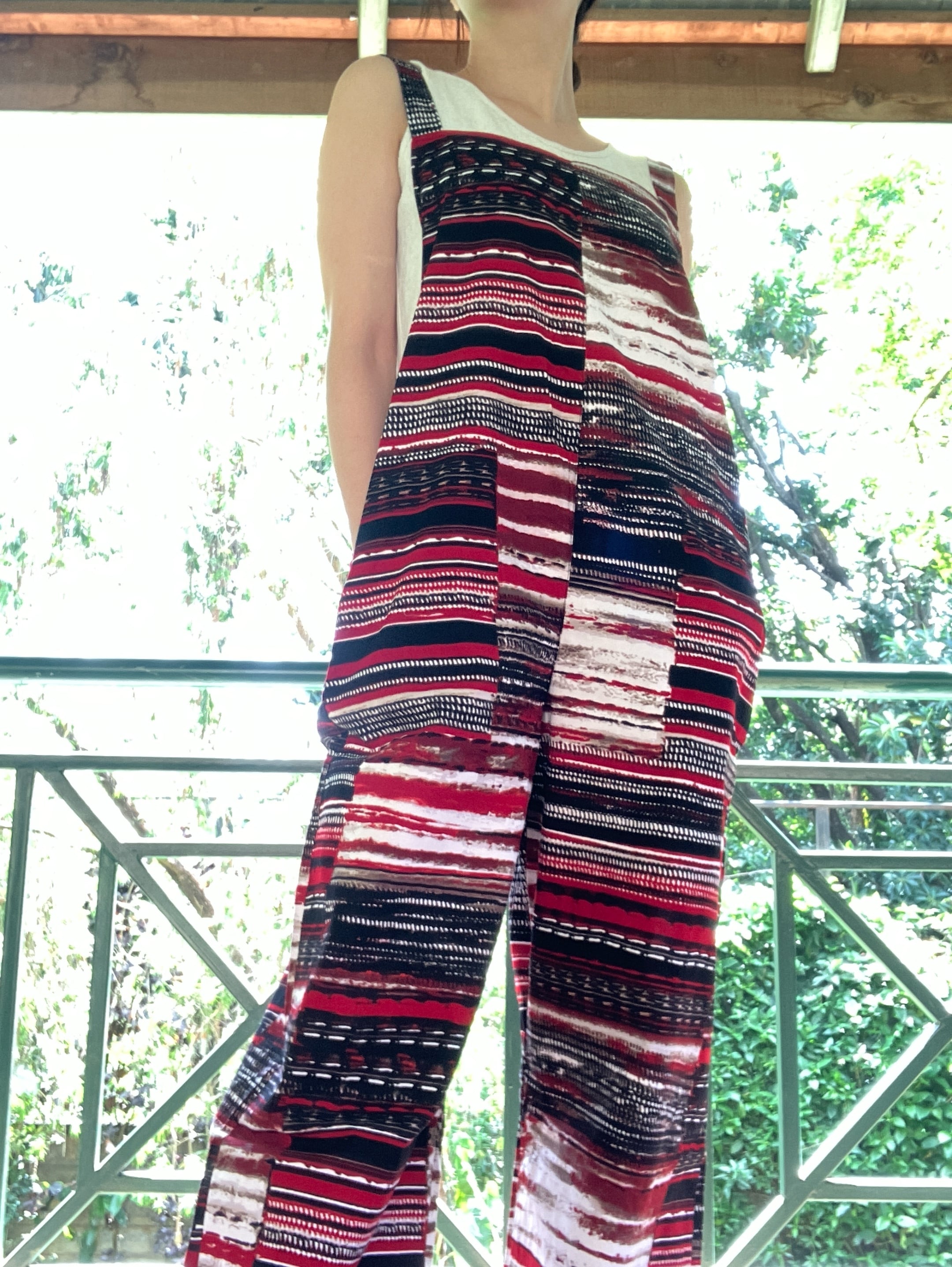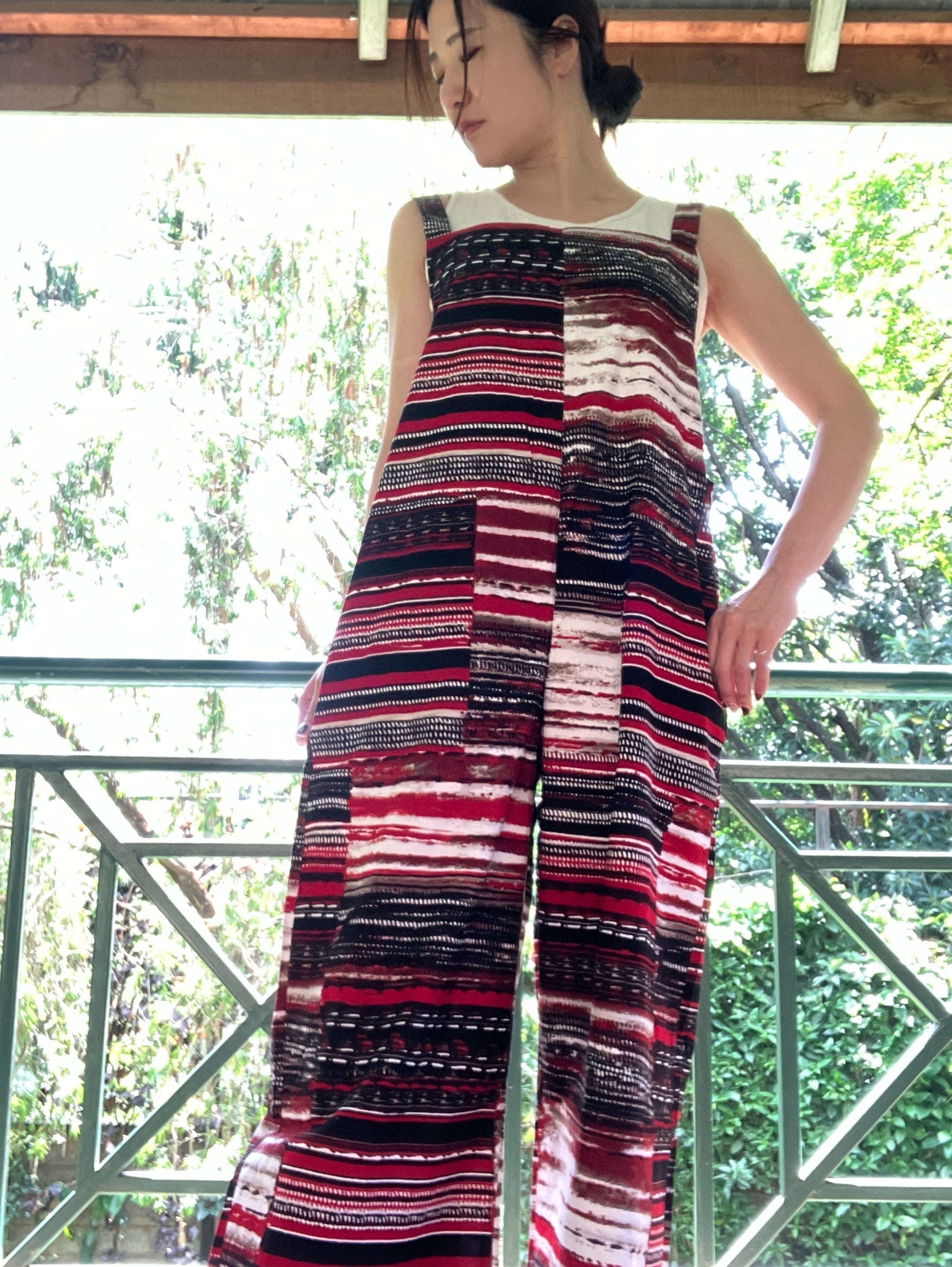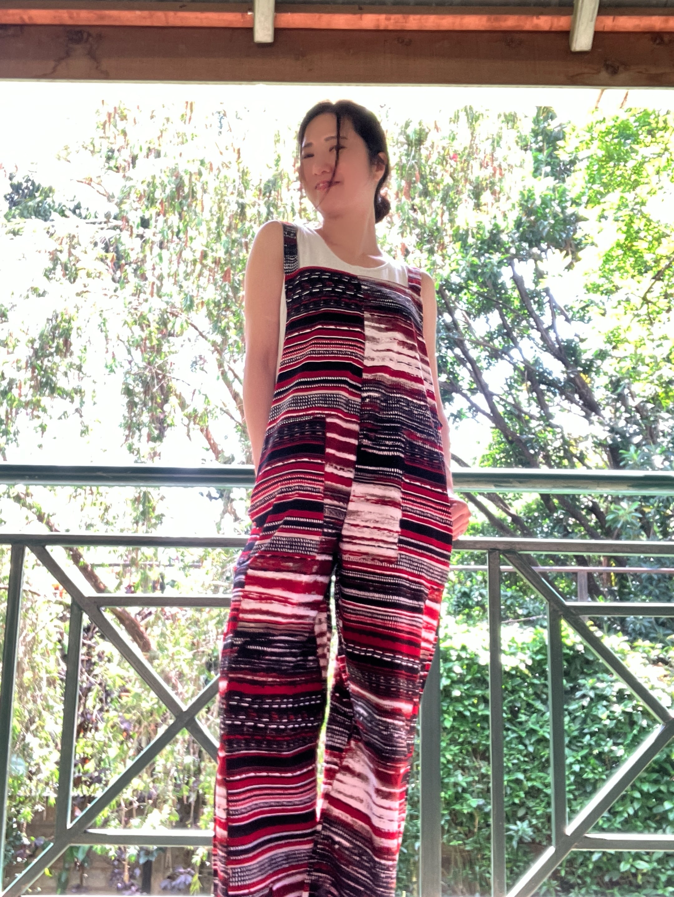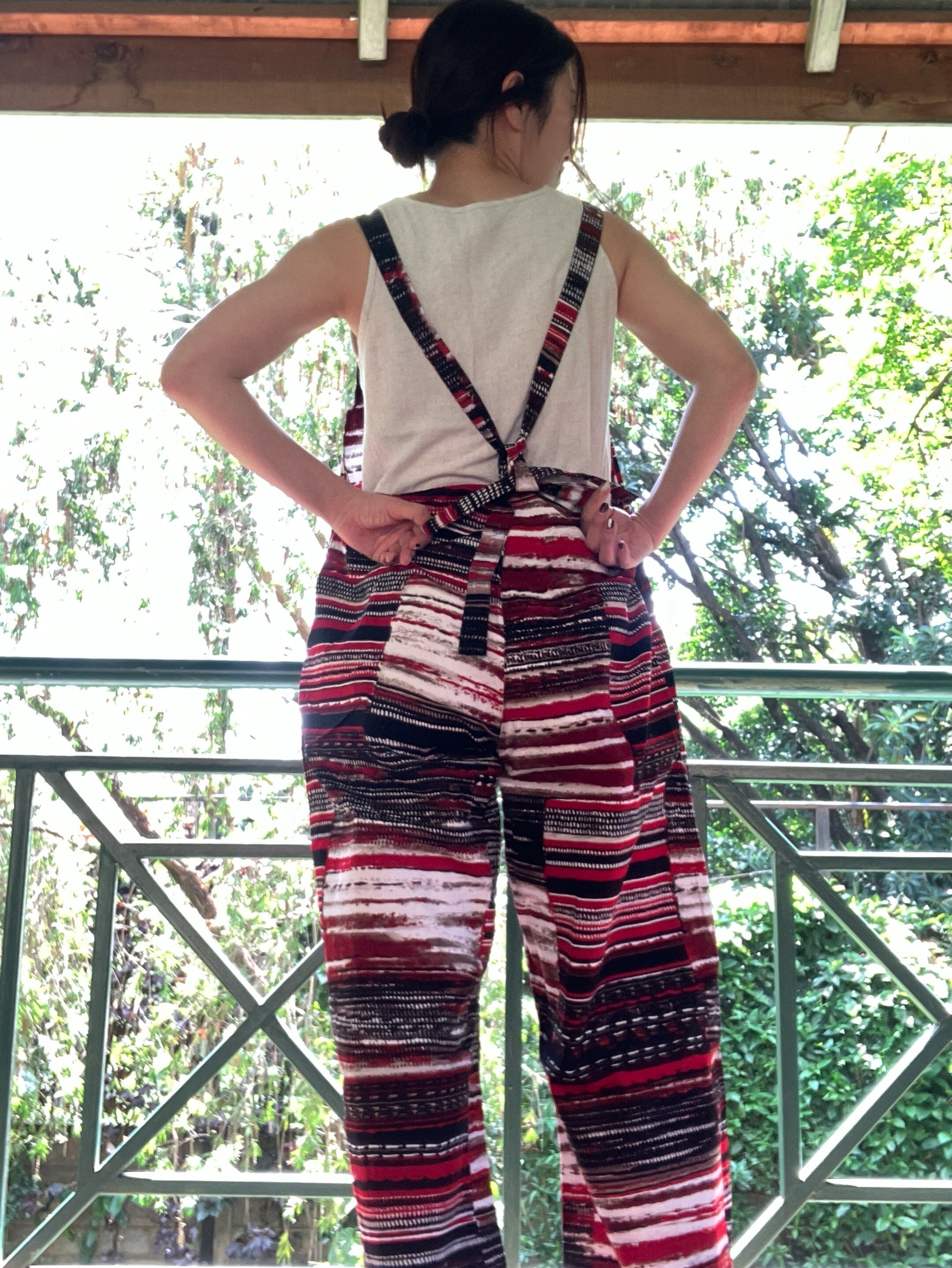 肩の紐を背中に回してリボン結びするだけの、簡単かわいいサロペット!