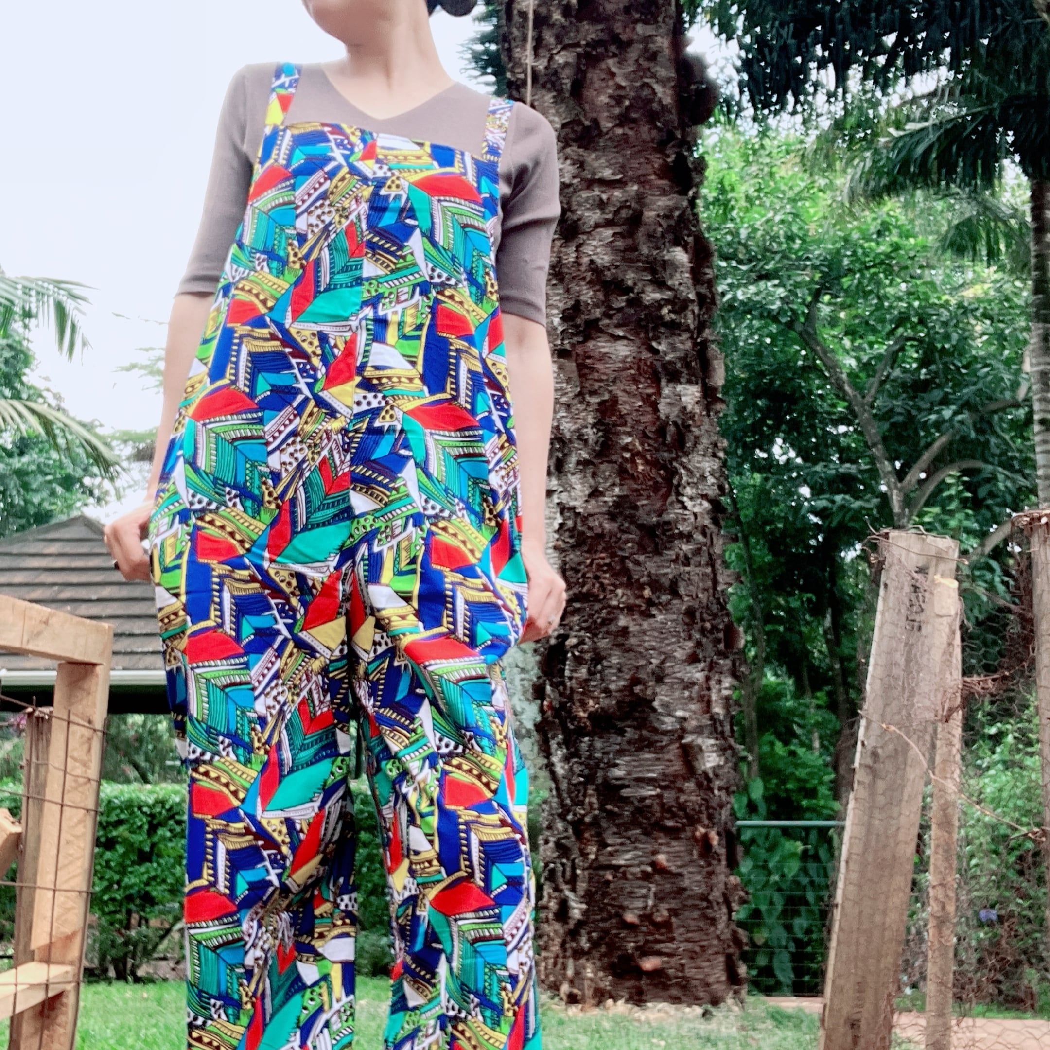 肩の紐を背中に回してリボン結びするだけの、簡単かわいいサロペット!