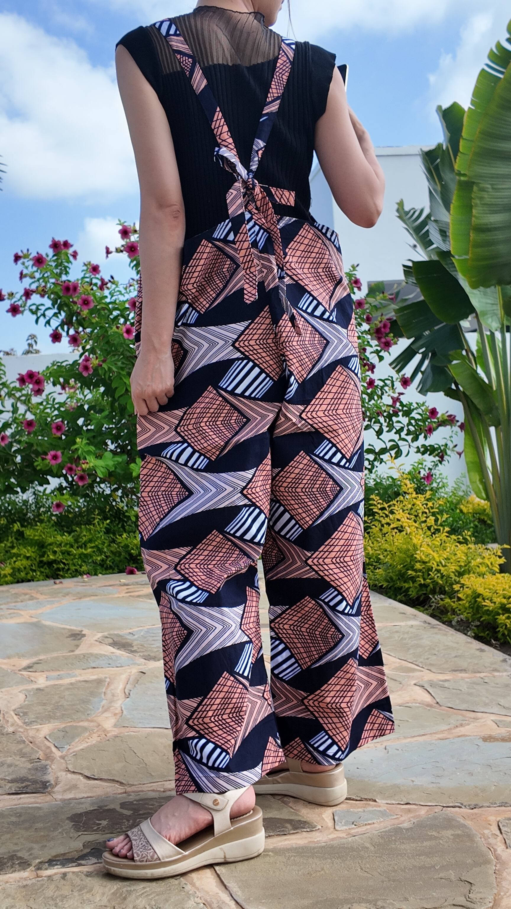 肩の紐を背中に回してリボン結びするだけの、簡単かわいいサロペット!
