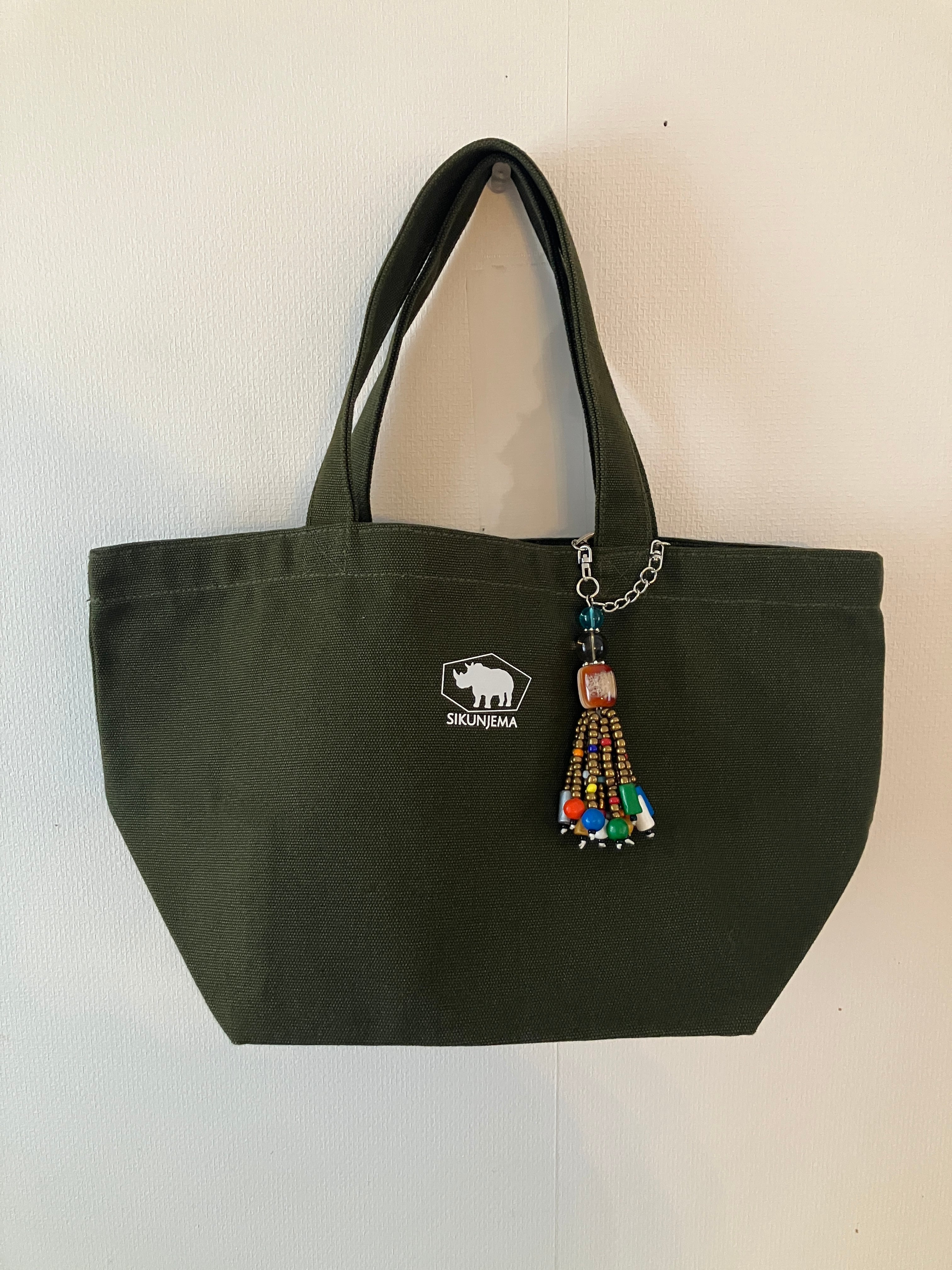 使いやすいカラーのシクンジェマ舟形トートはしっかり厚めのキャンバス生地。しっかりと立ち上がりますのでシクのスカートやパンツなどカラフルなものと合わせると◎ アフリカケニアで見つけた存在感のあるチャーム付き 取り外しが可能なのでお気に入りのバックに付け直すことも可能 チャームは世界に一つだけのカラーとなります プレゼントにもおすすめです。 size W35cm✖︎H20.5cm✖︎D16cm