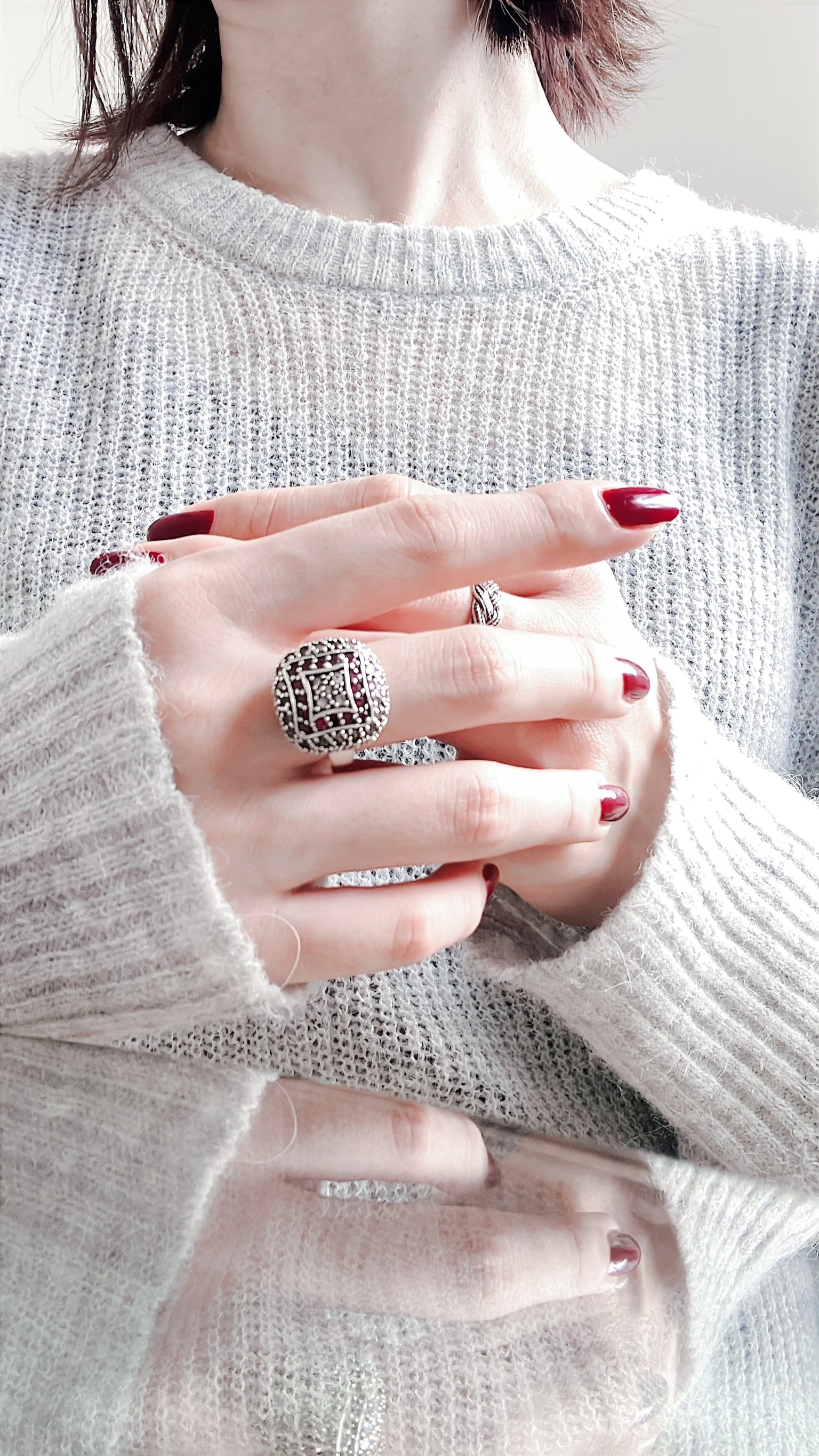 silver 925 :red agata dome シルバ-925 美しく光る赤いレッドアガタを大胆にシルバーで包んだドーム型のリング。世界で一つのとっておきプレミアムリング。 SIZE 13 縦1.8㎝ 横1.8㎝