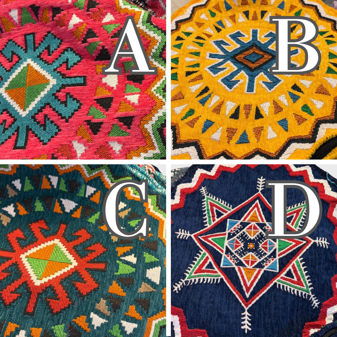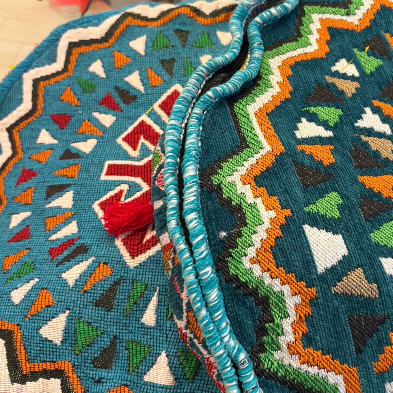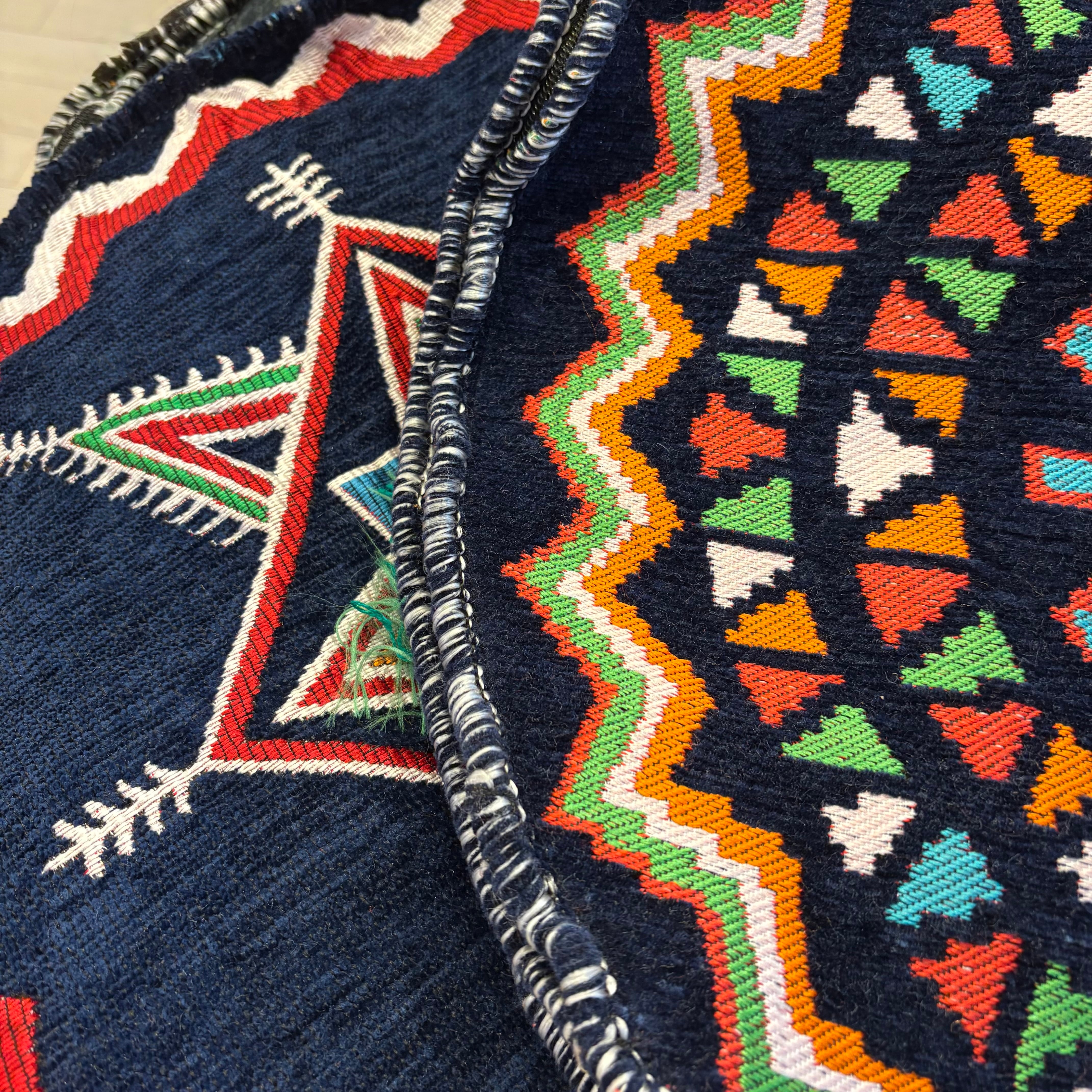 オリエンタルなキリム柄と、あたたかみのある色合いが魅力のプフスツール。