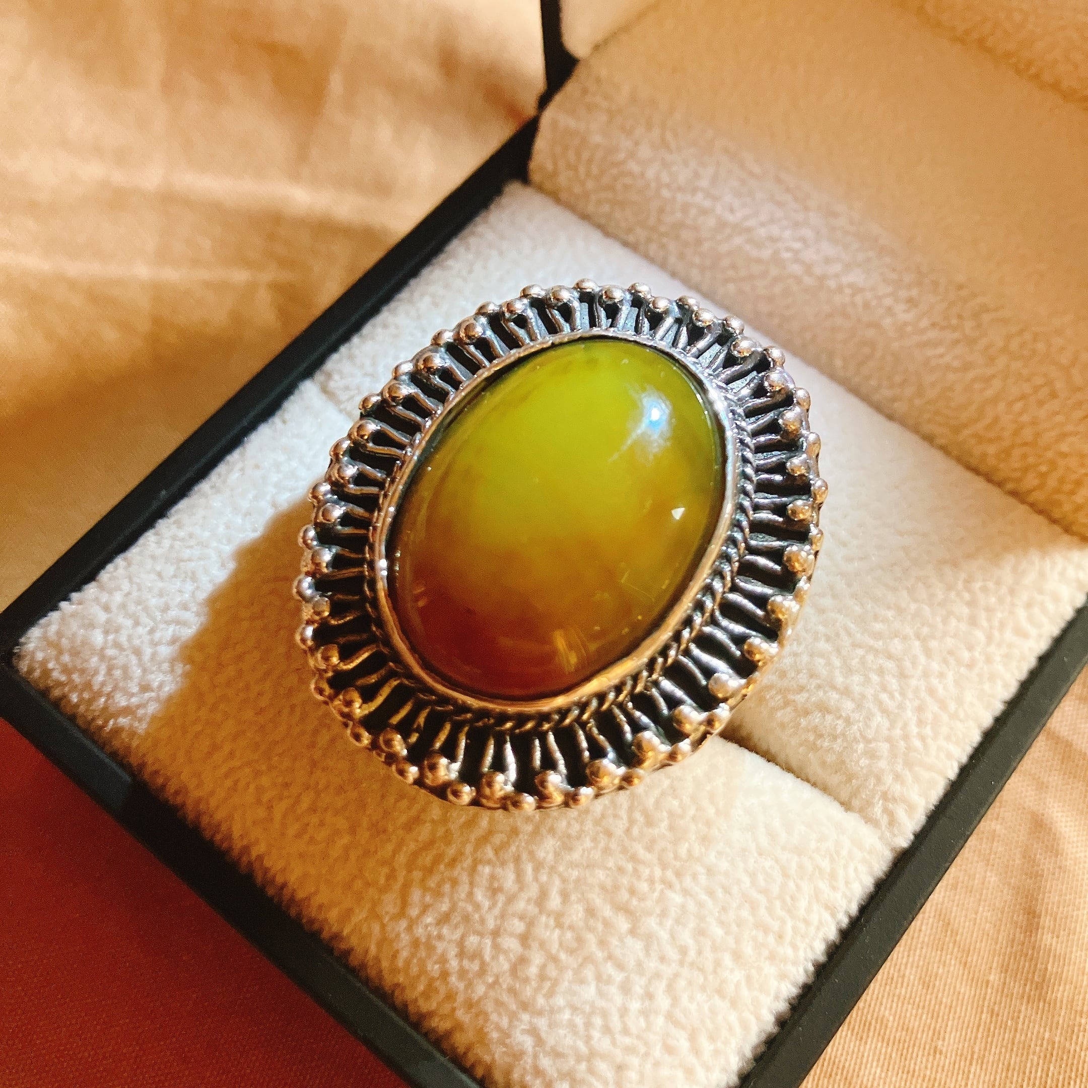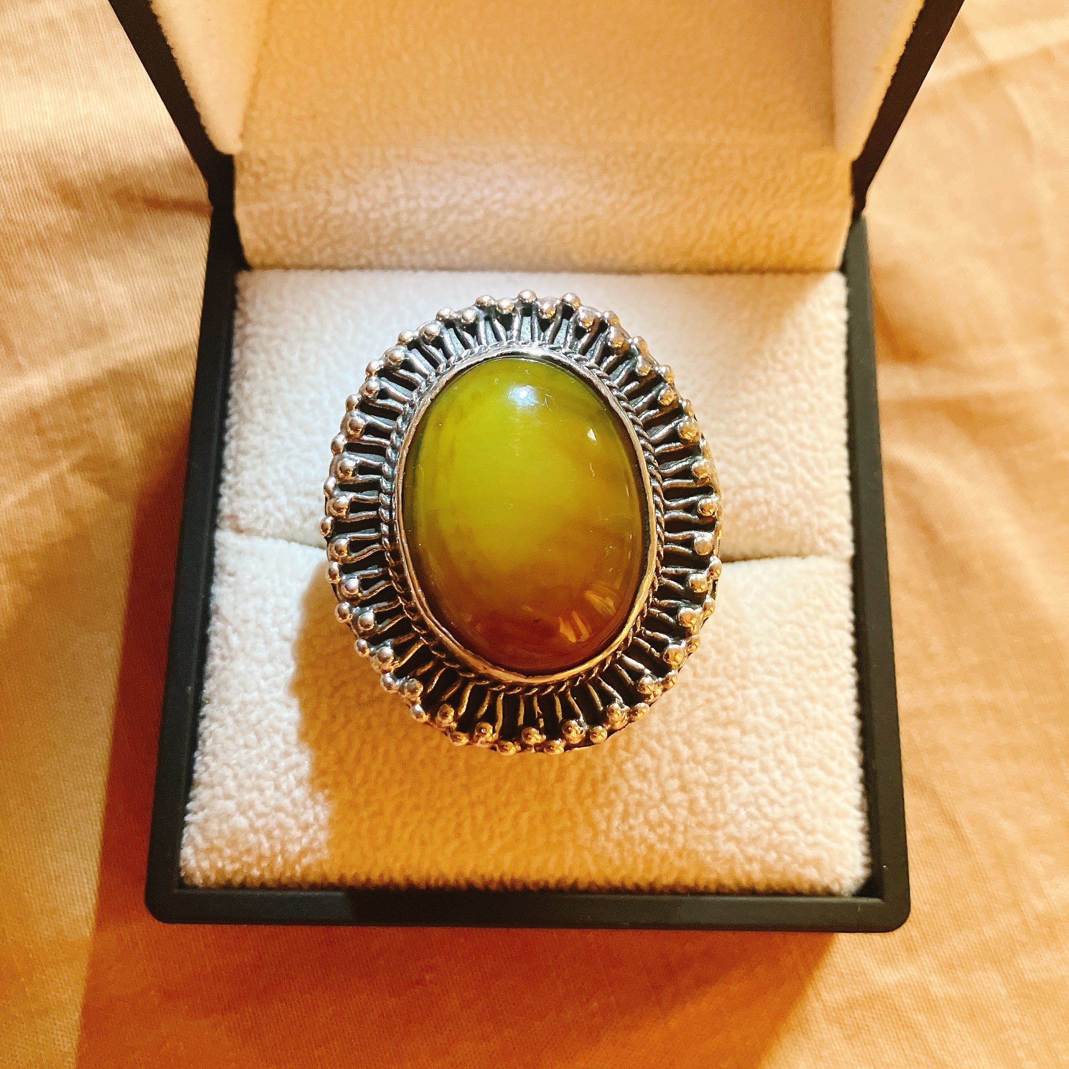 とても大きくて、インパクト抜群のブラウンアガタを贅沢に使ったリング。大きめリングが好きな方にぜひ手に取っていただきたい、リングです。