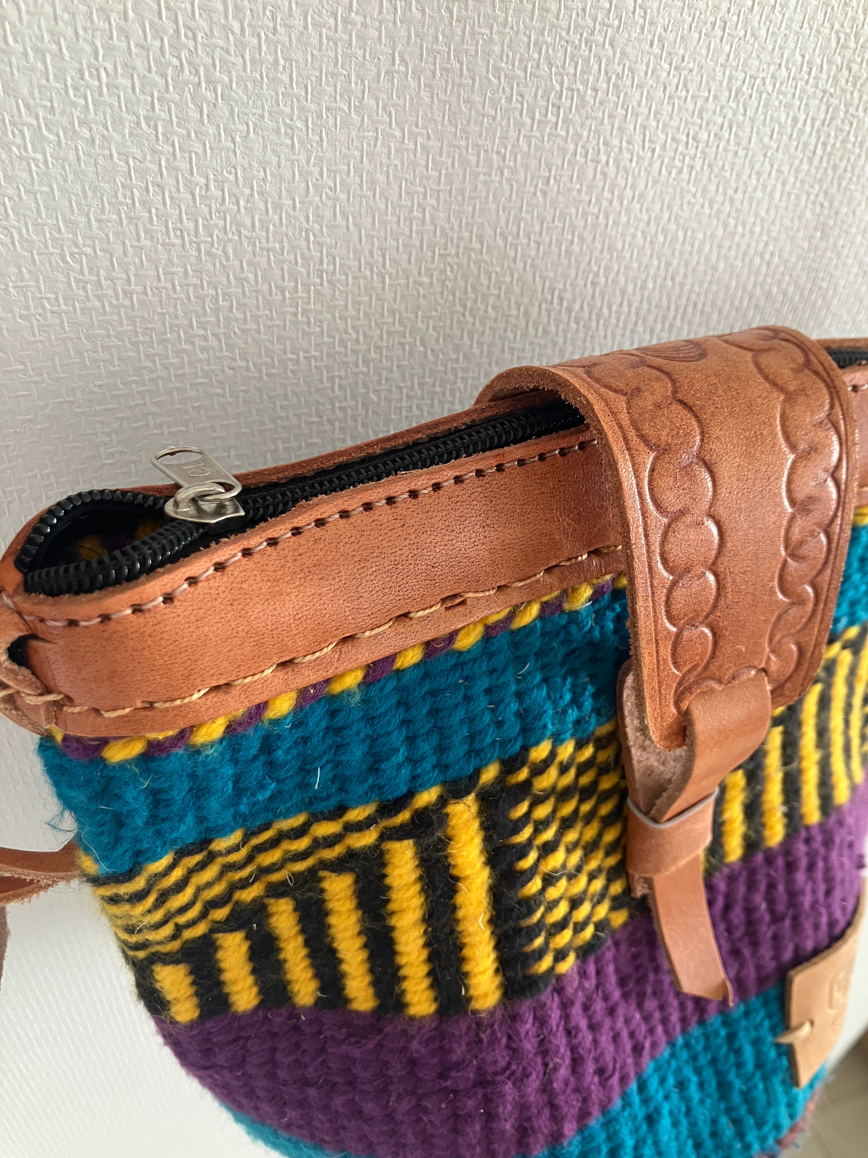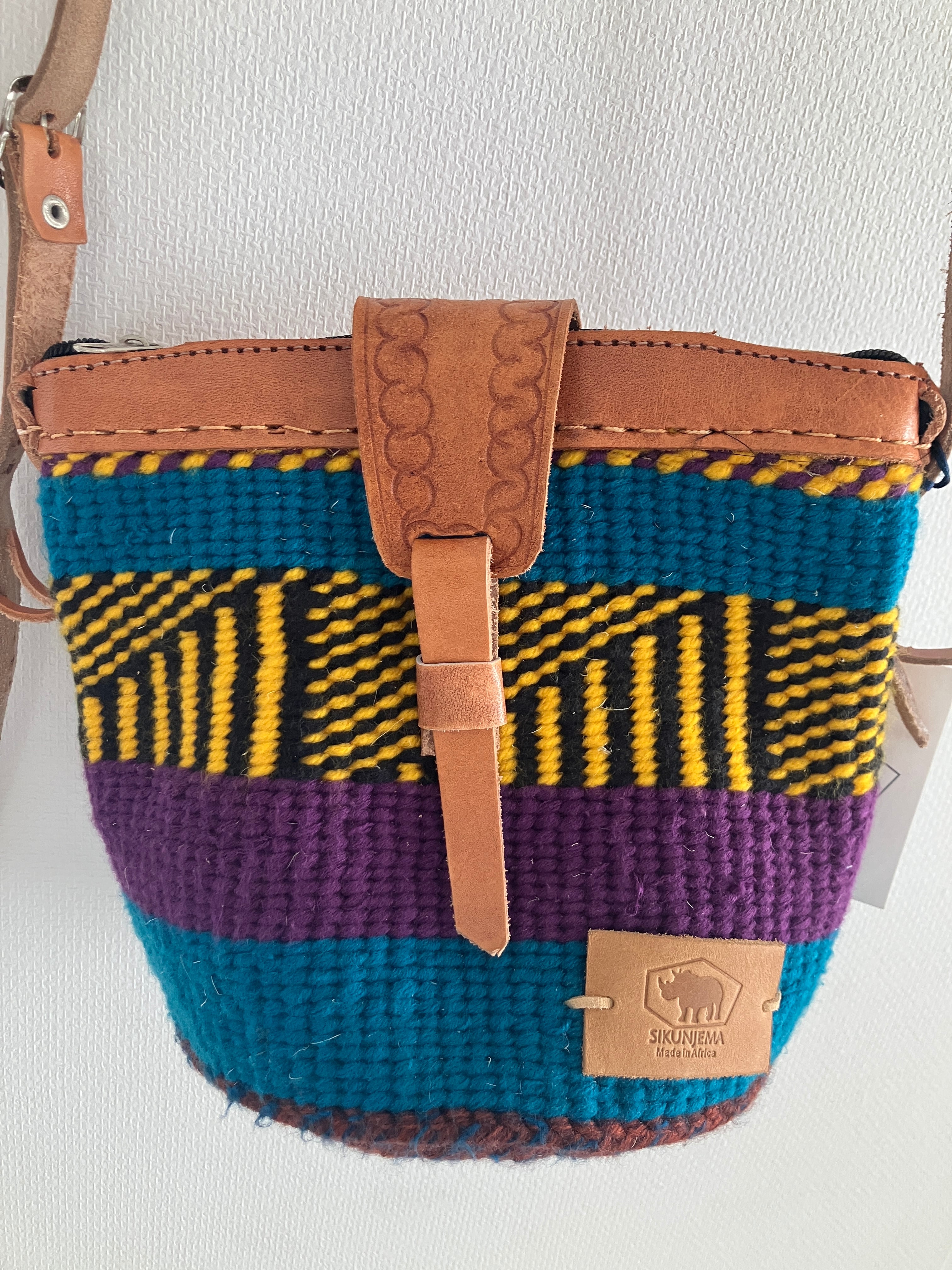 アフリカ ケニアで作られたサイザルバックとウールがミックスされたバック。