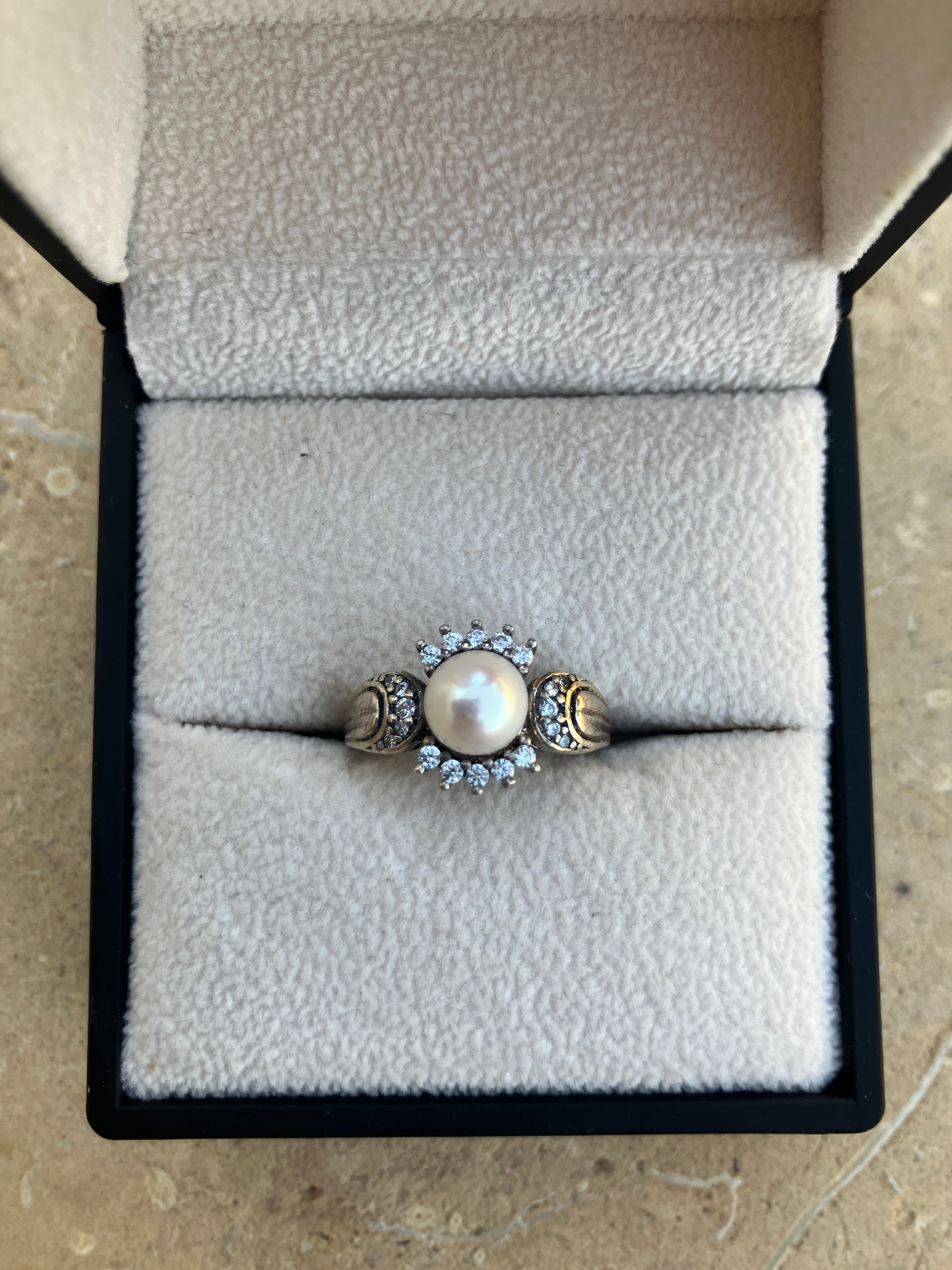 エジプトは砂漠のイメージ。そこから届いたなんとも美しいパール。地中海に面した美しいアレキサンドリアという土地で見つけた天然パールです。周りにはジルコニアがたくさんついていて、動くたびにキラキラと光ります。フォーマルな場面でも、カジュアルでも。楽しんでぐんといい女をあげるアクセサリーです。