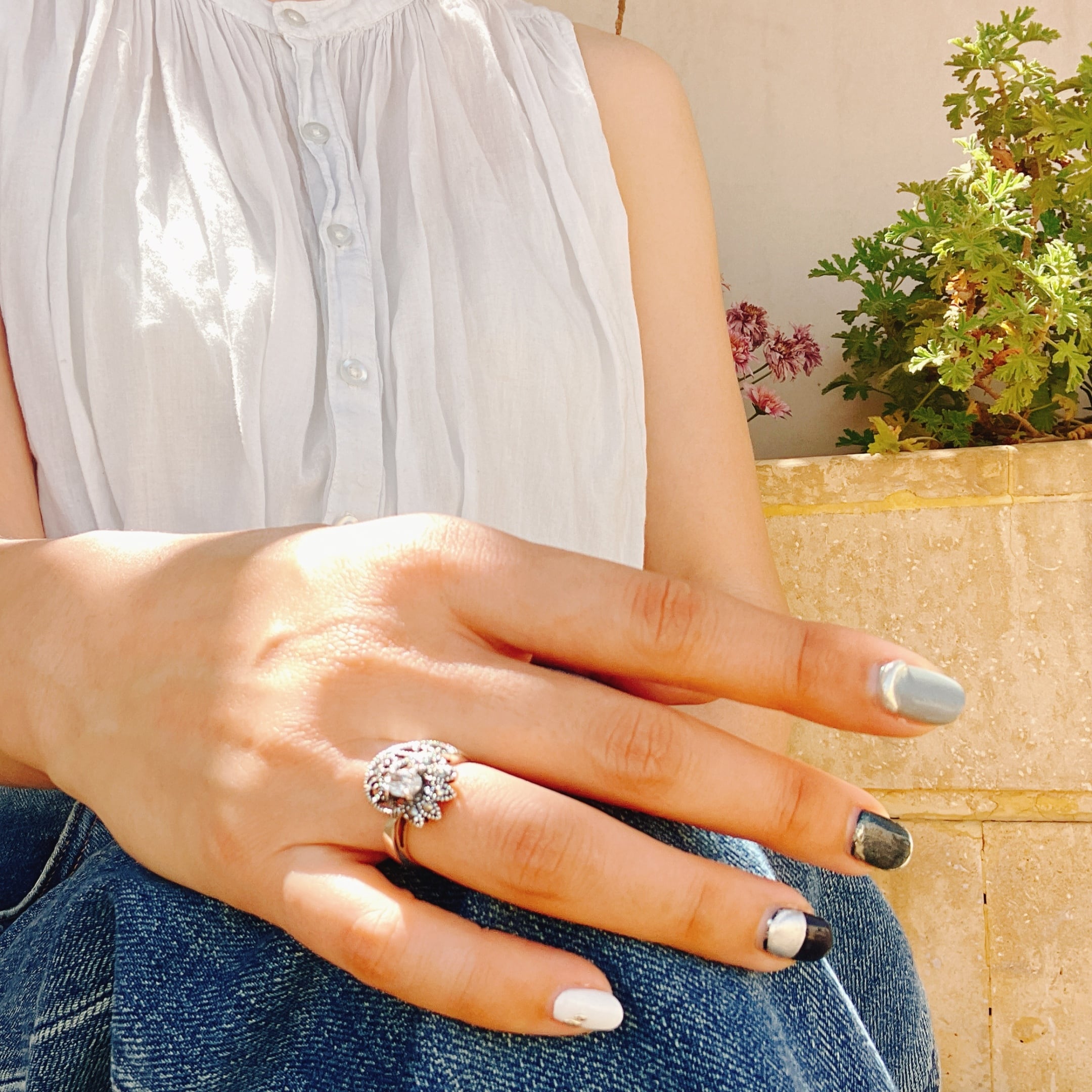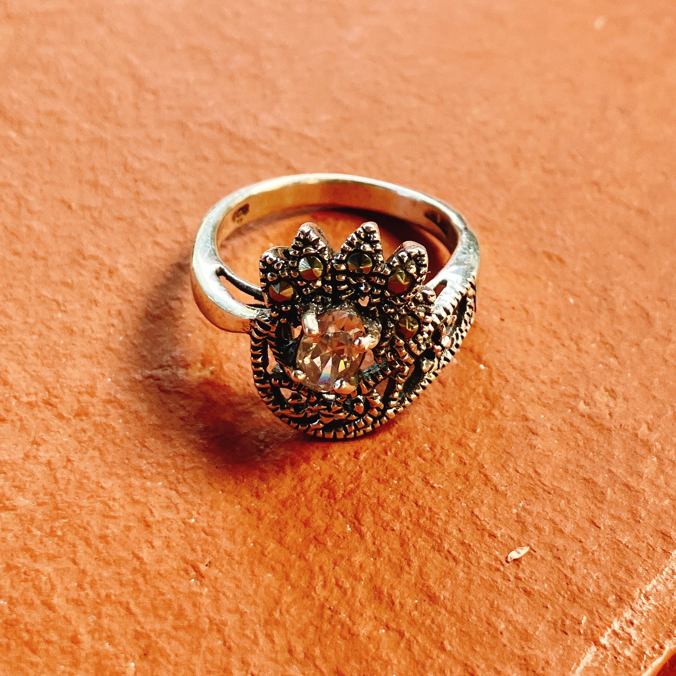 エジプトの老舗シルバーショップからのピュアシルバーリングが登場! シルバー925 エジプトからシルバーとジルコニアの美しいリングが届きました。手を動かすたびにキラキラと光り輝くリングです。大きめのジルコニアが1つついていて存在感があります。フォーマルな場面でも、カジュアルでも。楽しんでぐんといい女をあげるアクセサリーです。 世界にひとつだけの特別なリング。 アフリカからの多くのエネルギーを感じてください。 サイズ:11