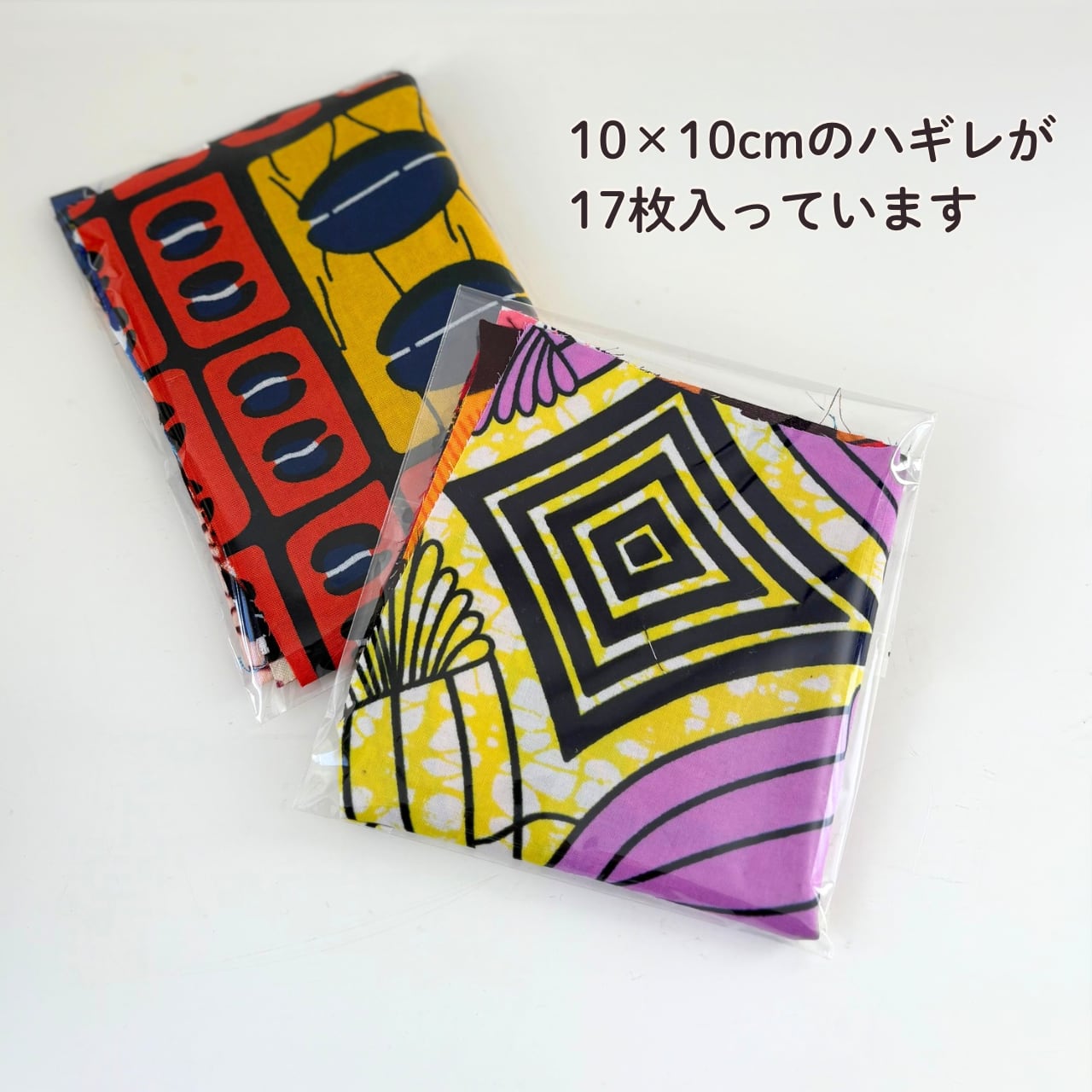 ・アフリカ布ハギレ 2種(10×10cm/計17枚)