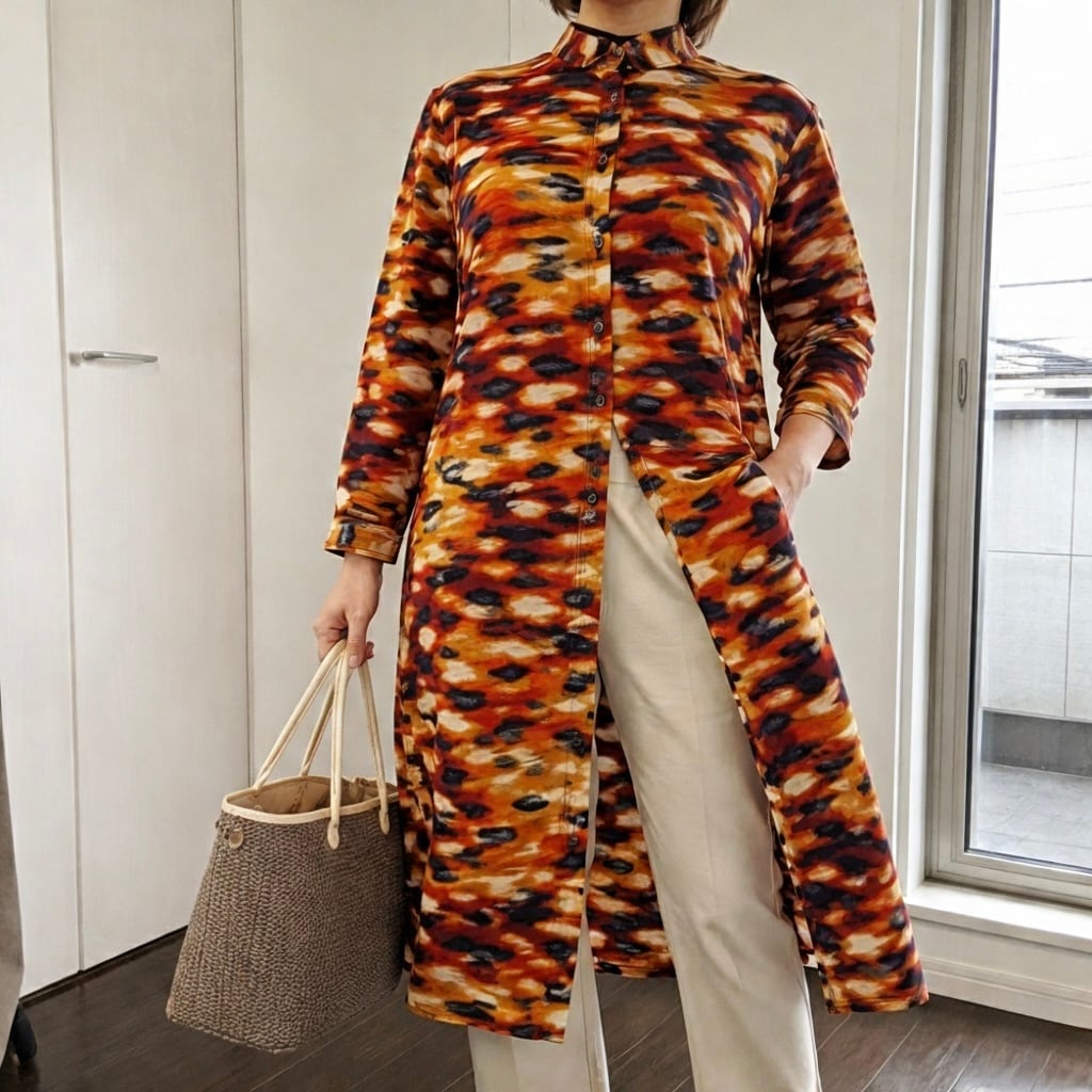 • サイドスリット:足さばきが良く、ボトムスとのレイヤードも映えるデザイン。