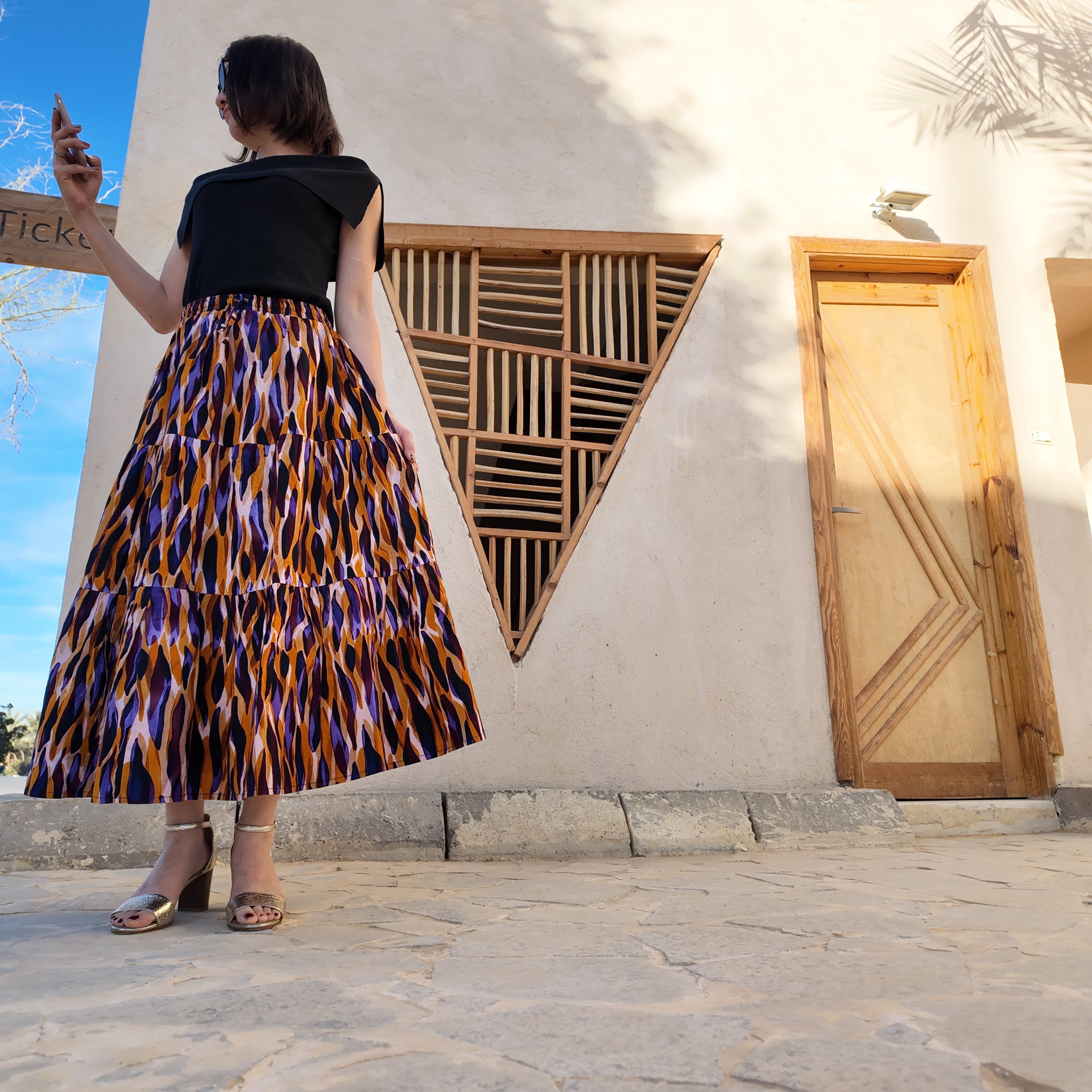 計算された流れるような形。それでいて広がりすぎない。歩くたびにエレガントにゆれるちょっと大人のスカート。