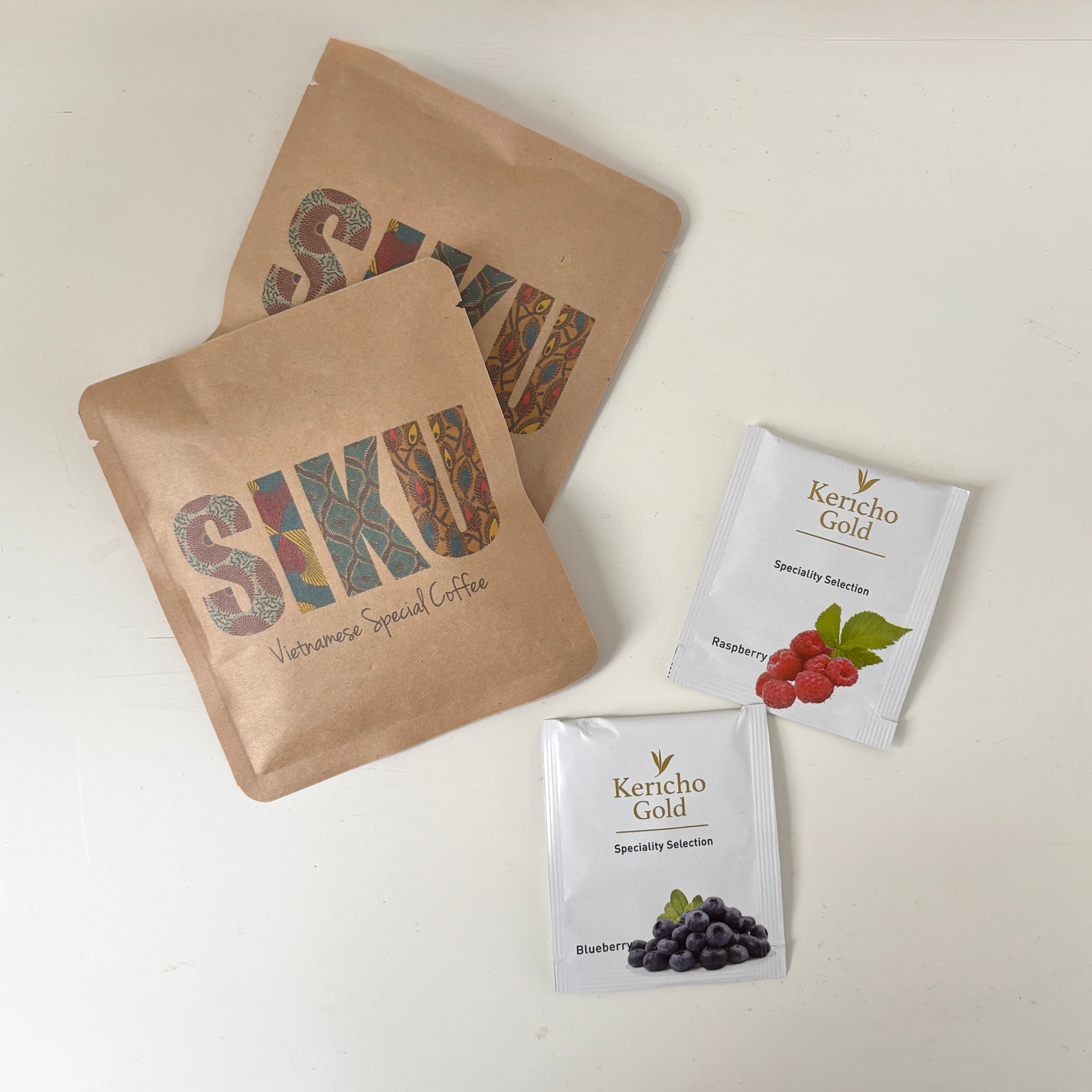 「Mudiboポーチ」と、新しい生活の合間にホッと一息つける「コーヒー&ティー」の詰め合わせです。