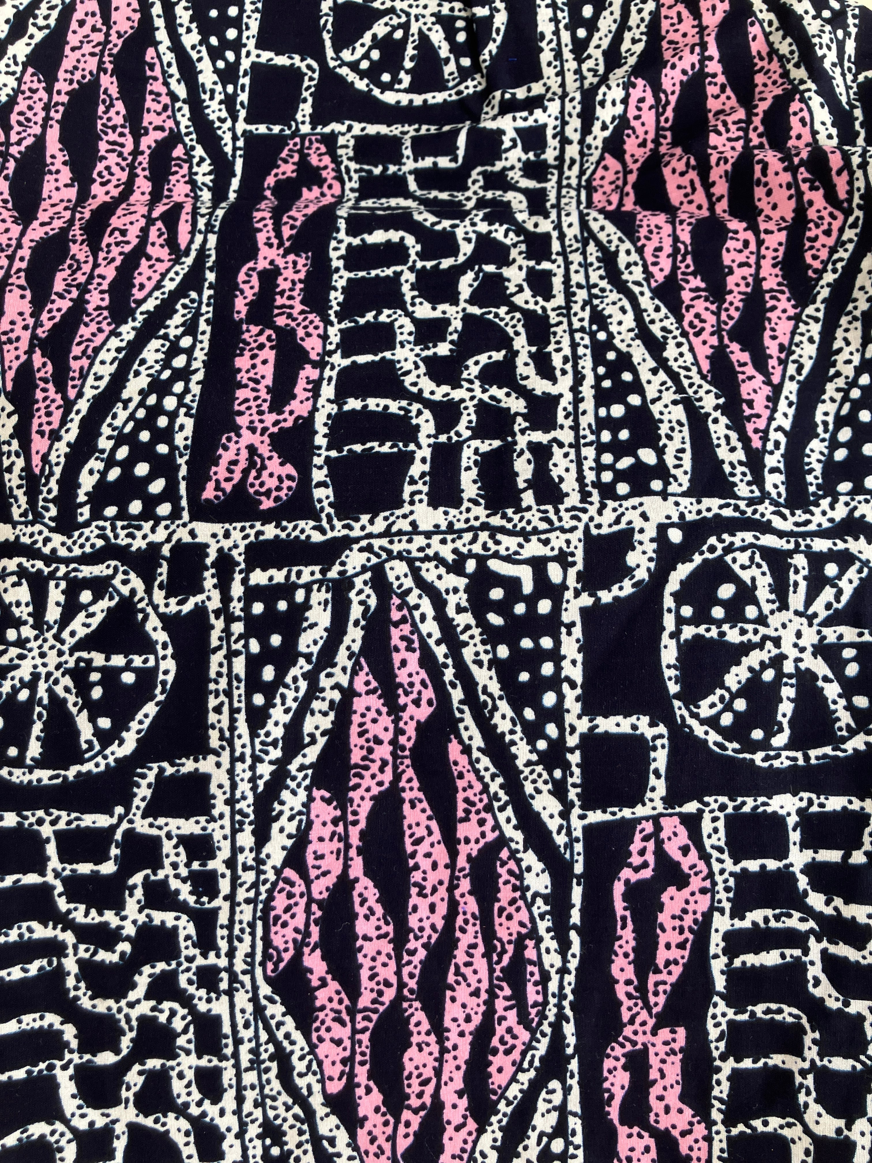 使いやすい黒ベースのパンツですが薄いピンクが入った甘辛柄。かかがんだり、座ったりするのもスムーズ。よく広がる裾です。春から秋まで長くご着用することができます。