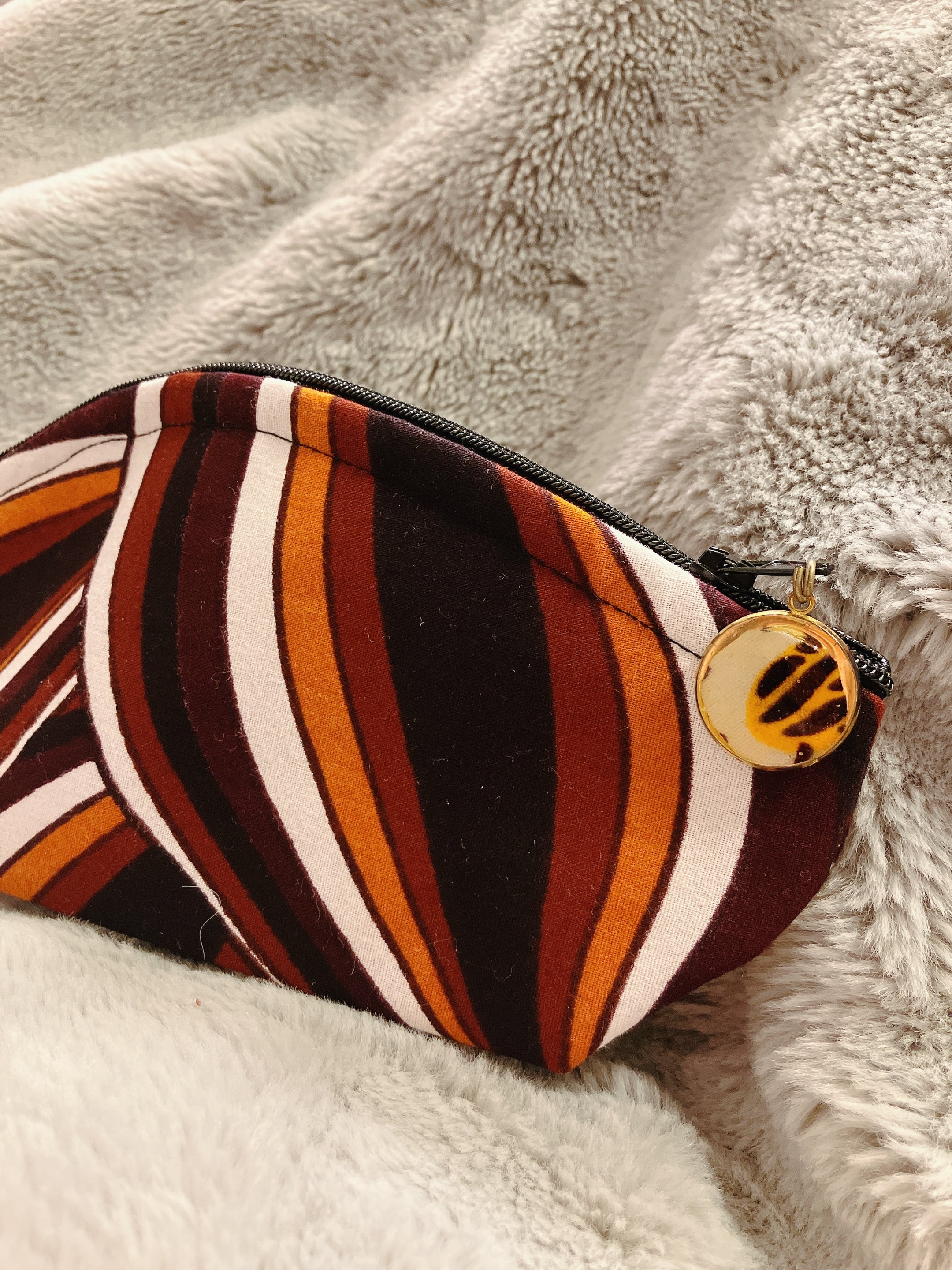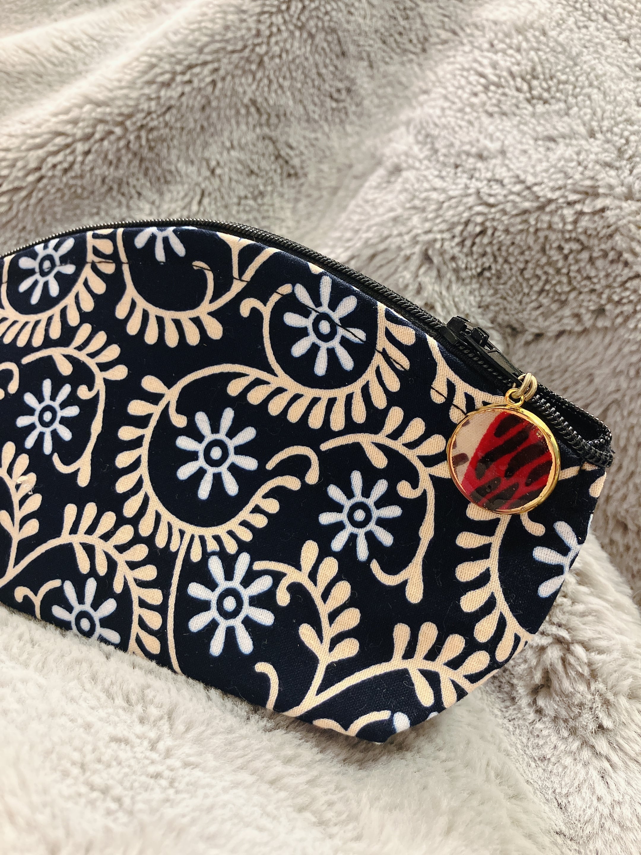 何かと便利なしっかりまち付きポーチ。化粧品をちょこっと入れて持ち歩くのに便利なサイズ。今回はレジンで作った可愛あるチャームがついた特別仕様。 通常¥2200のポーチですが、売り切り価格のため¥800となります。 かわいくお包してプレゼント用にも喜ばれています。 プレゼント用をご希望の場合は、備考欄にプレゼント用希望とご記入ください。 チャームの柄は選ぶことができません。丸い同じタイプのチャームがつきます。 ポーチサイズ約W20cm H10cm