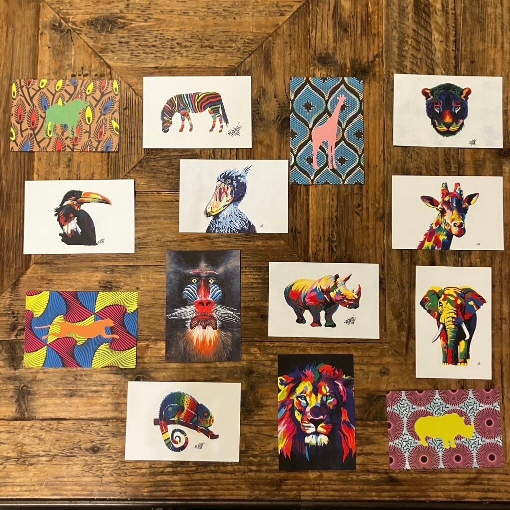 Mudiboさんの絵のポストカードが登場‼︎ 10種類全て入ったセットをご用意しました。 ご購入の方にはくり抜き動物のポストカードを1枚プレゼント‼︎ 11枚目の写真は、くり抜き動物のデザインです。 プレゼントにもお勧めです♪ ※プレゼントの1枚は動物をお選びすることは出来ません。 来た子を可愛がってあげて下さい。
