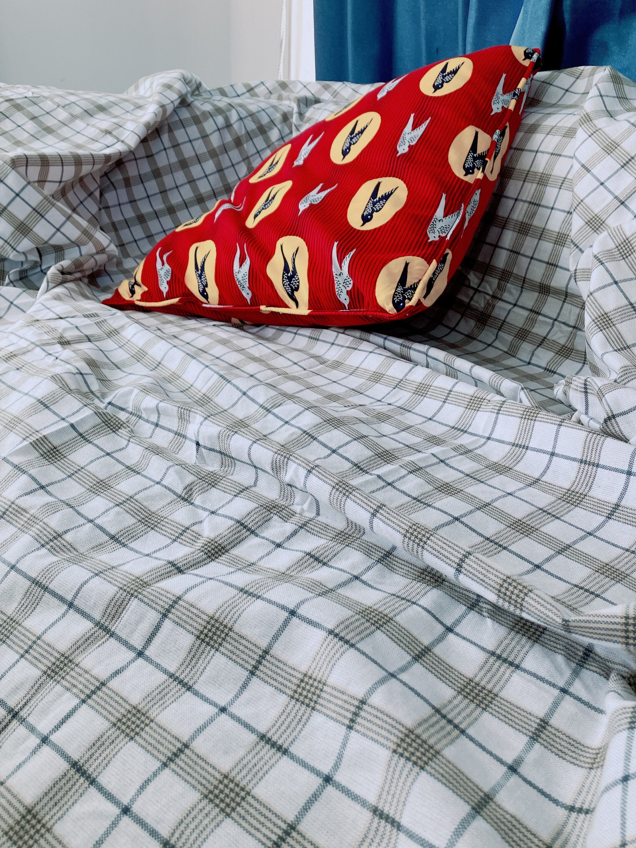 使い方いろいろのマサイシュカ。色も赤が基本のマサイ族ですが、オレンジやブルーもでています。共通するのはチェックであること。