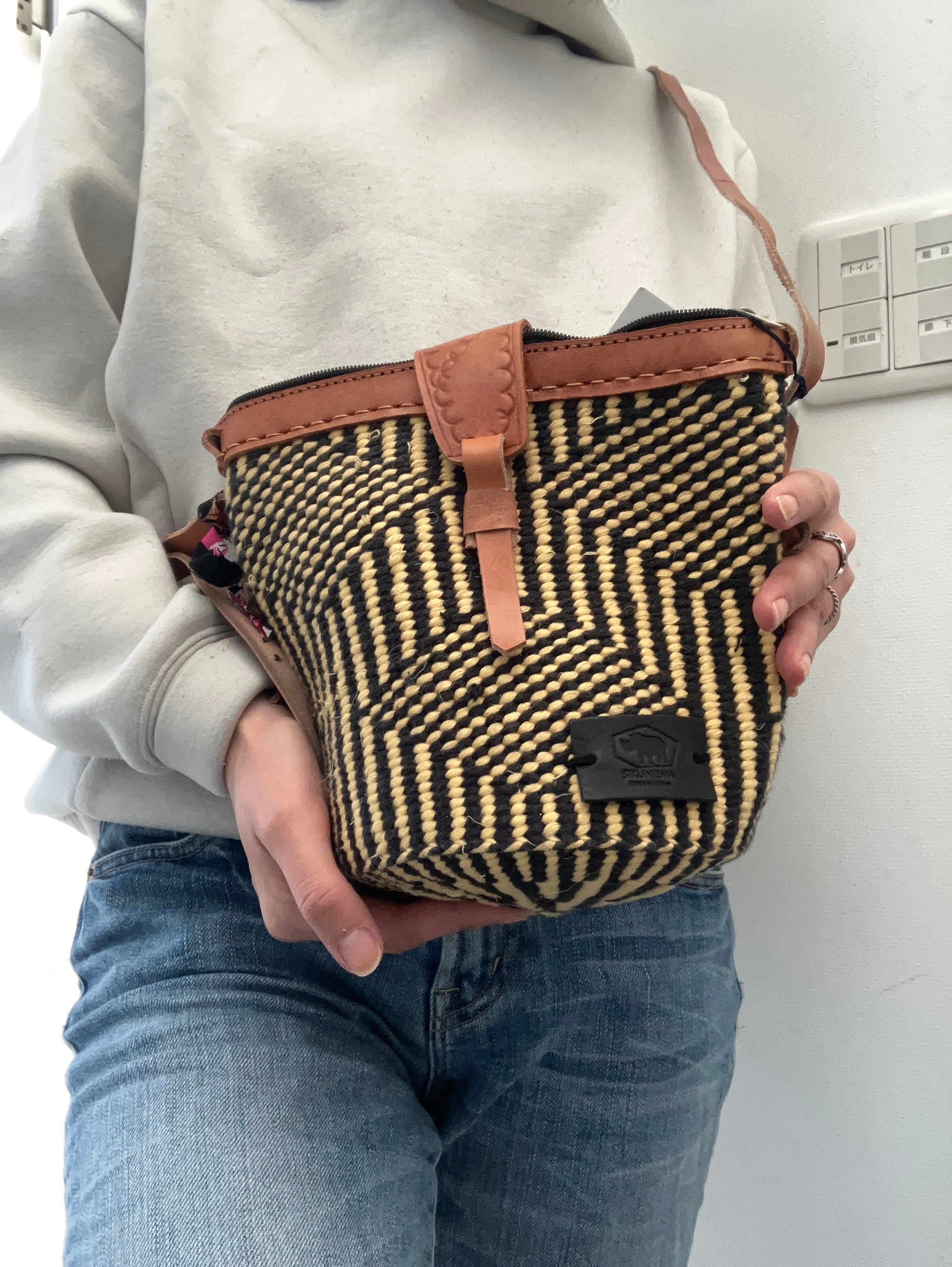アフリカ ケニアで作られたサイザルバックとウールがミックスされたバック。
