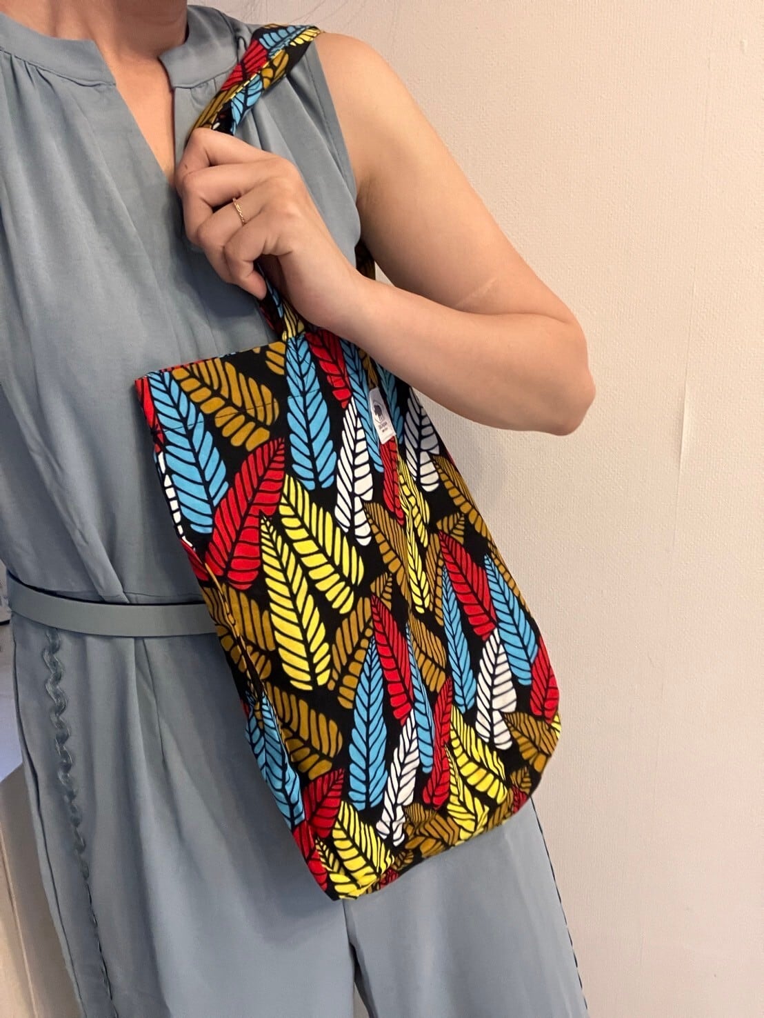 アフリカ布で作ったトートバックが登場! 中に同じ布で作ったポケットが付いています。 アフリカ布でとっても可愛い! 布だから汚れても洗えて安心! 軽くて便利! セカンドバッグとしてもエコバックとしても ちょっとしたお出掛けにも どんな時でも手軽に使えるバックです。 3枚目は着用例です。 SIZE H:38cm W:36cm D:10cm