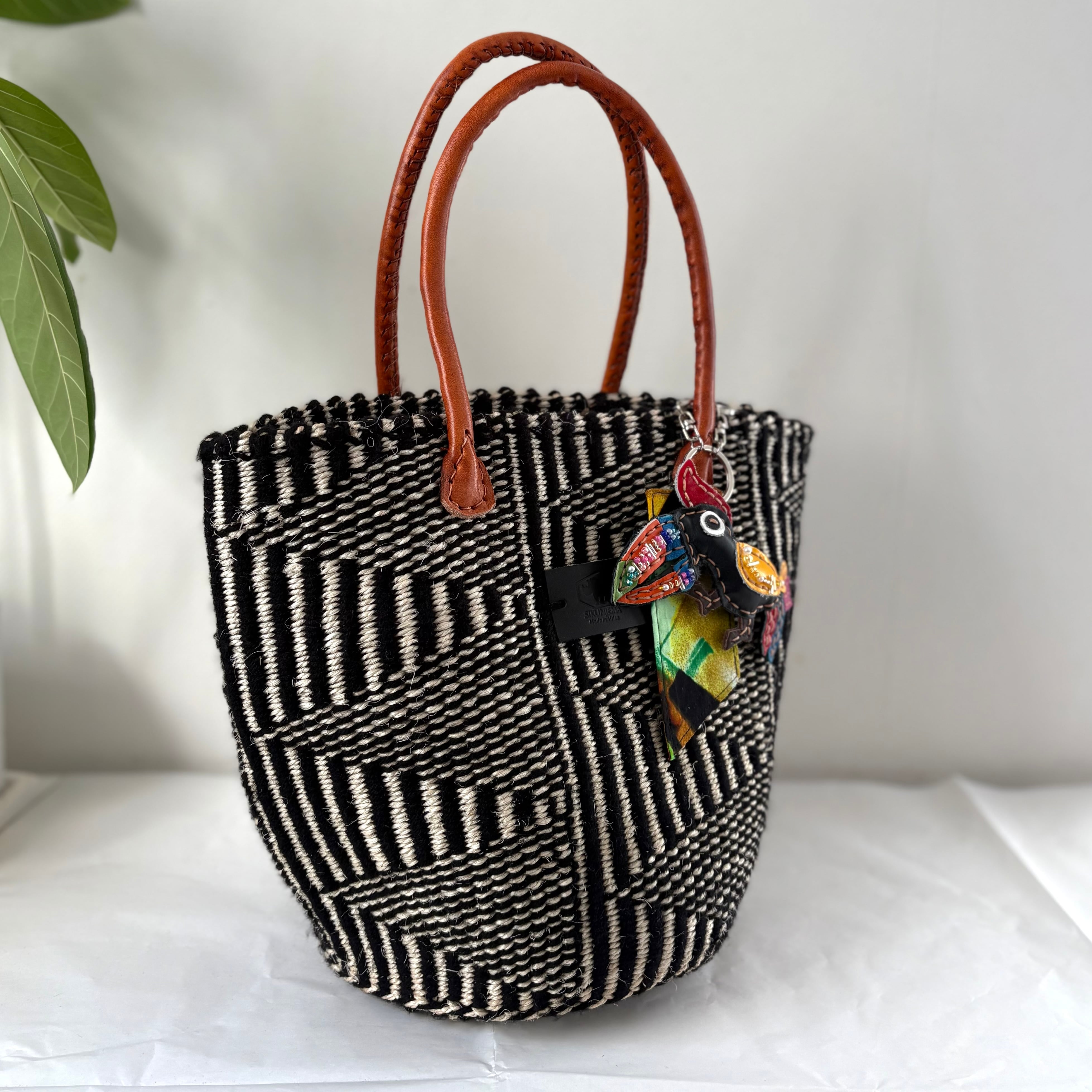 フリンジ部分には、アフリカ布のハギレを使用しています。