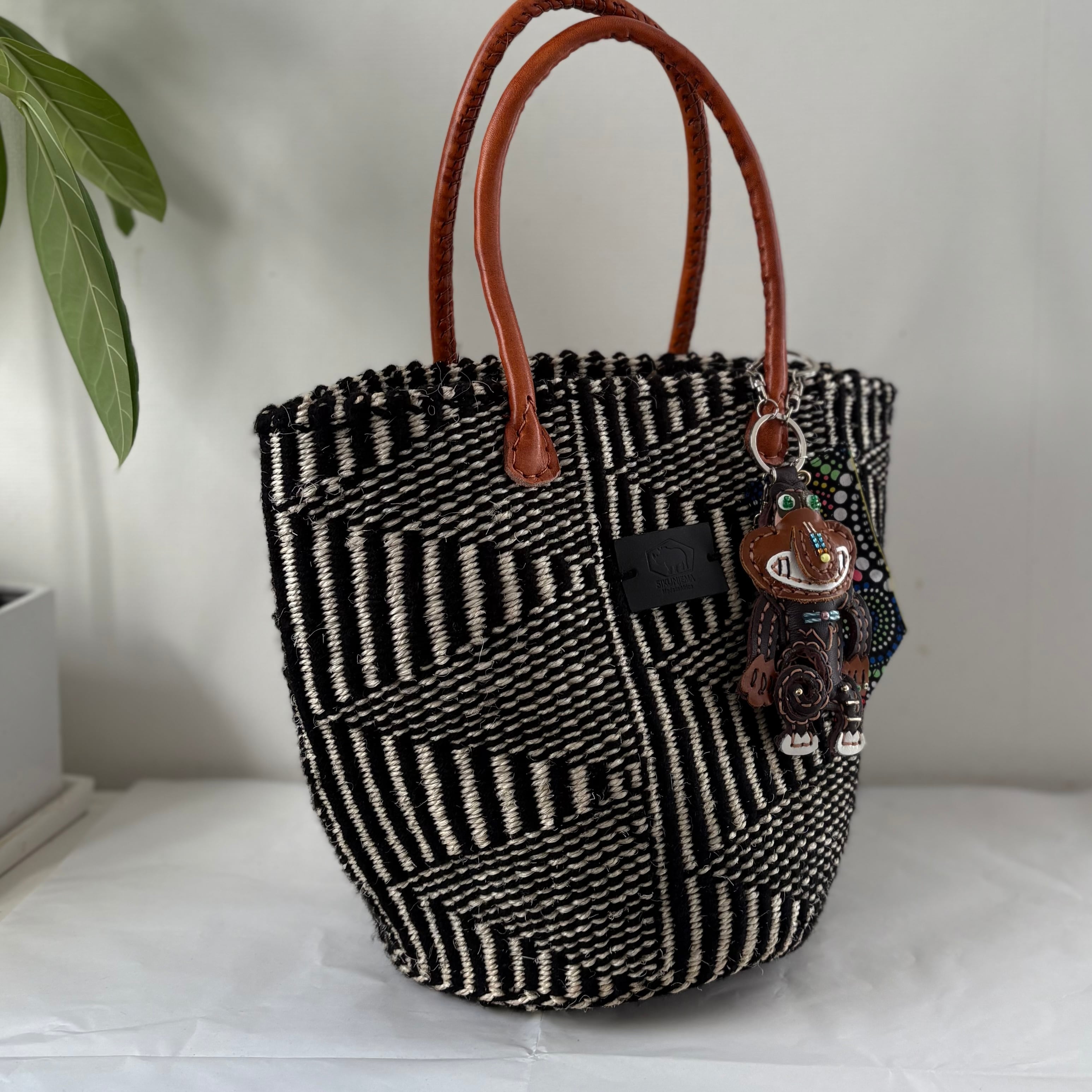 フリンジ部分には、アフリカ布のハギレを使用しています。