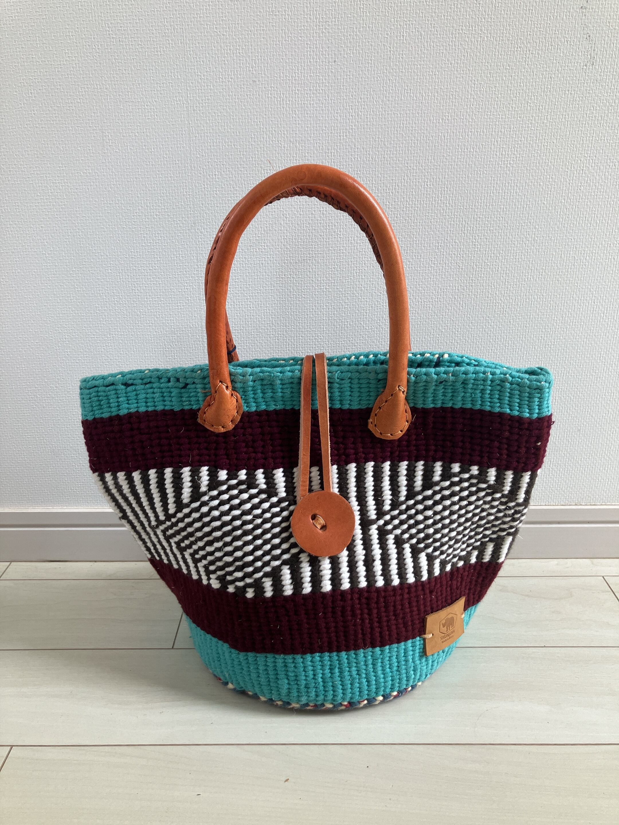 アフリカ ケニアで作られたサイザルバックとウールがミックスされたバック。
