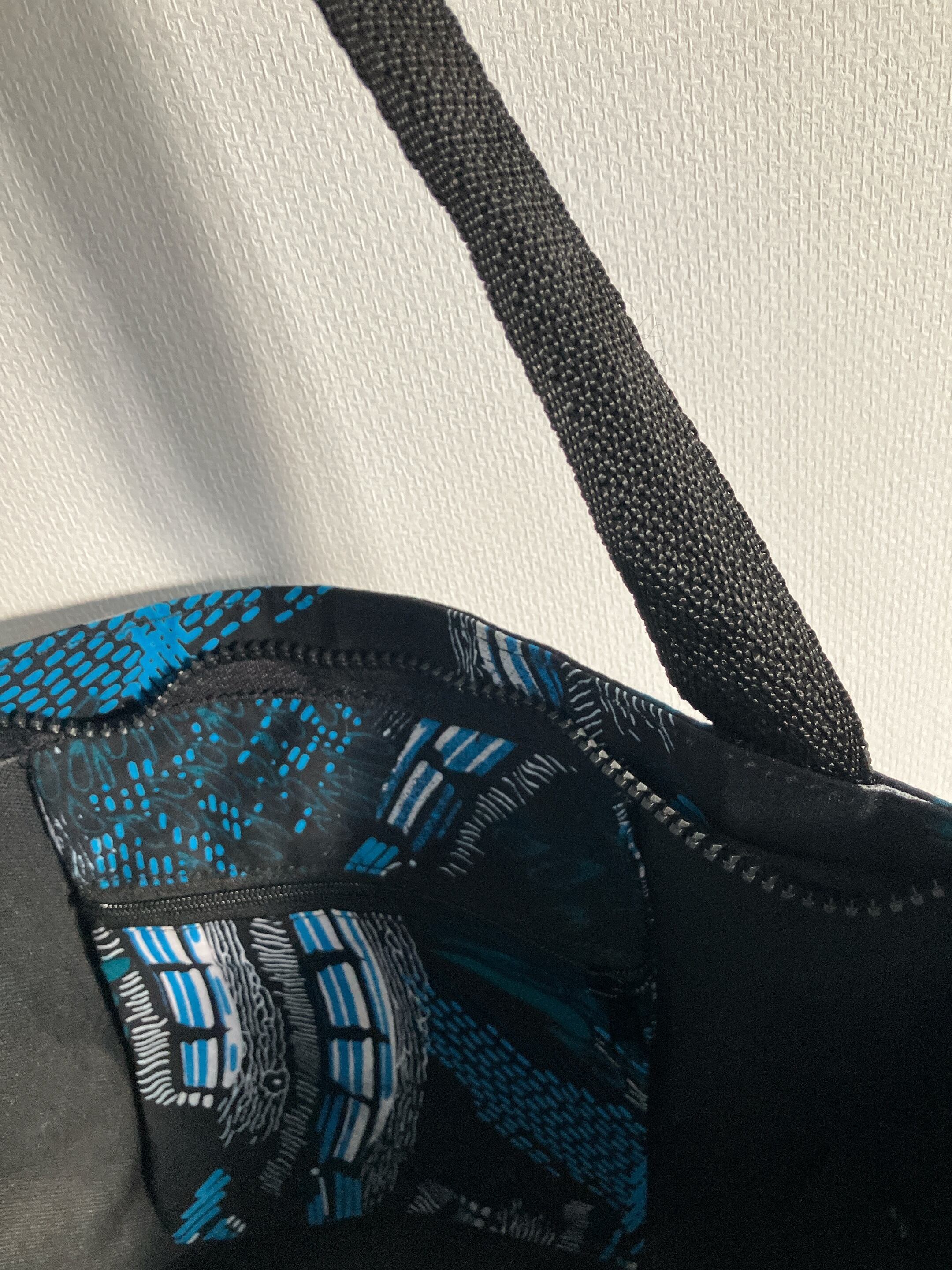 ケニアの首都、ナイロビにある孤児院で作った舟型タイプのビックトート。強く、しっかりとした生地にするために、裏地は強度がありながら汚れに強い素材を使用。また、たくさんの荷物を入れて、グイグイ閉めても大丈夫なように、ファスナーは日本で購入した物を取り付けています。ビックファスナーでグリップが握りやすいのも特徴。 内側にはジップのついた安心ポケットが1つついています。 size W63cm ✖︎ H35cm ✖︎ まち18cm ハンドル56cm