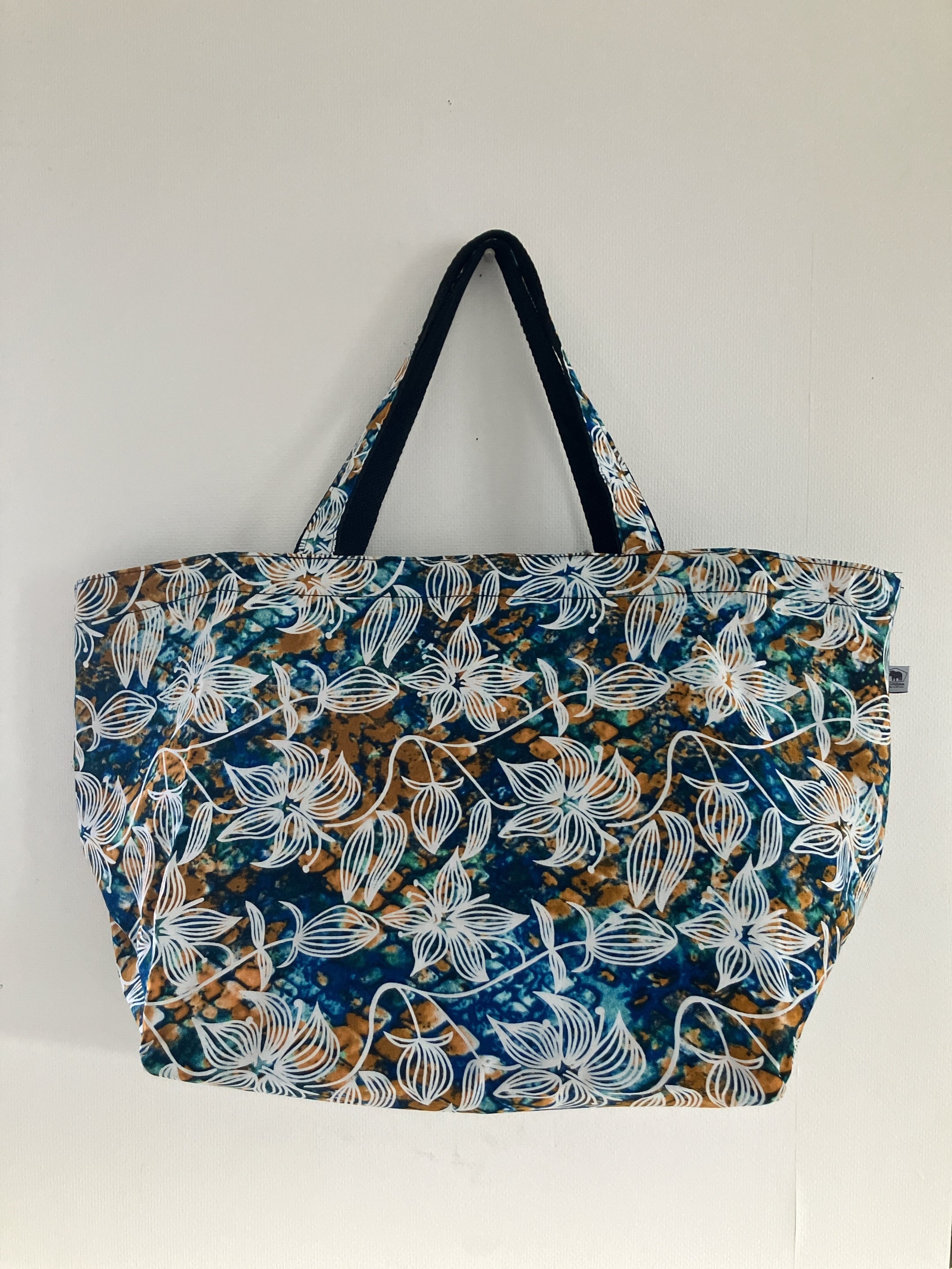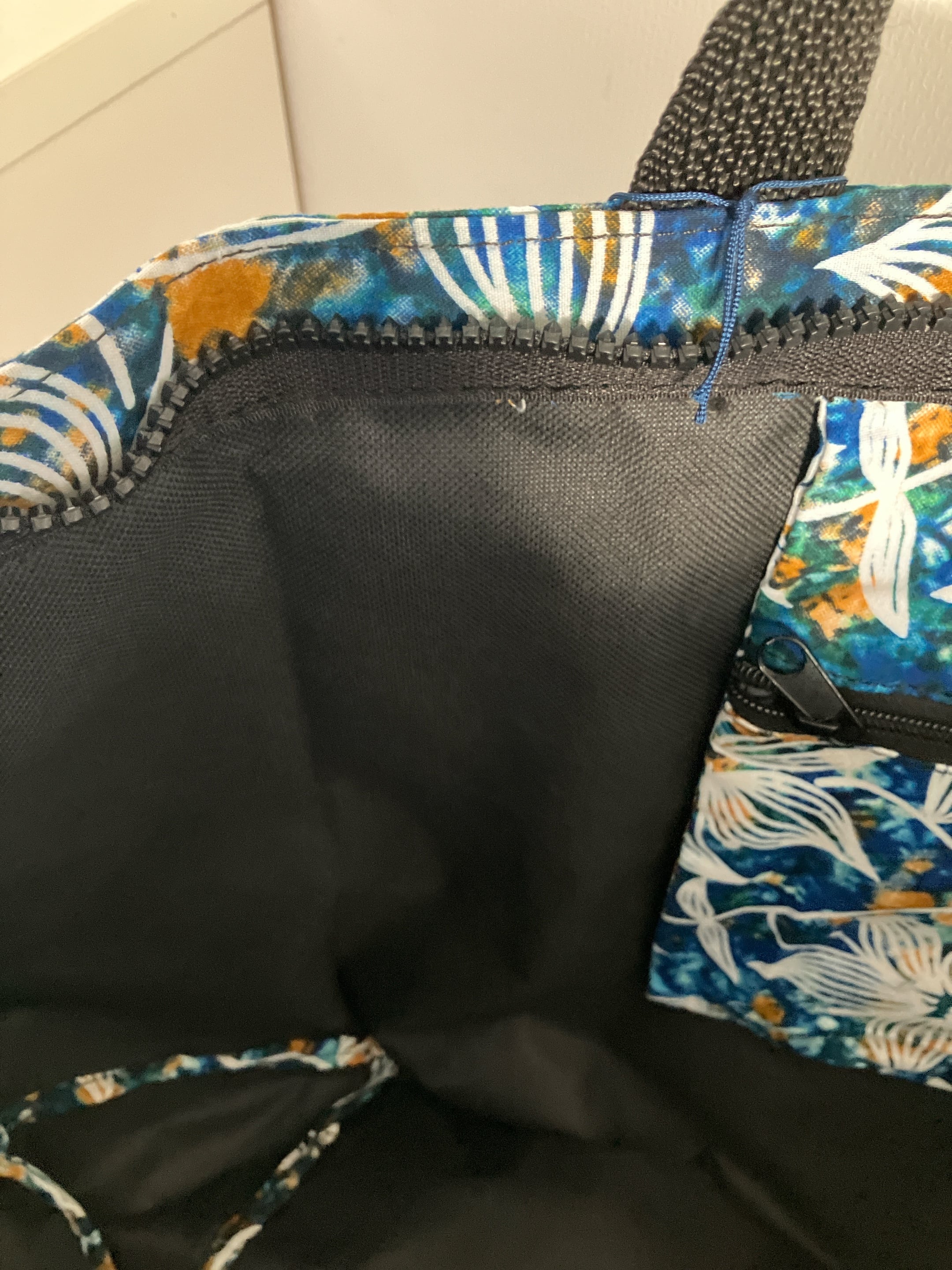 ケニアの首都、ナイロビにある孤児院で作った舟型タイプのビックトート。強く、しっかりとした生地にするために、裏地は強度がありながら汚れに強い素材を使用。また、たくさんの荷物を入れて、グイグイ閉めても大丈夫なように、ファスナーは日本で購入した物を取り付けています。ビックファスナーでグリップが握りやすいのも特徴。