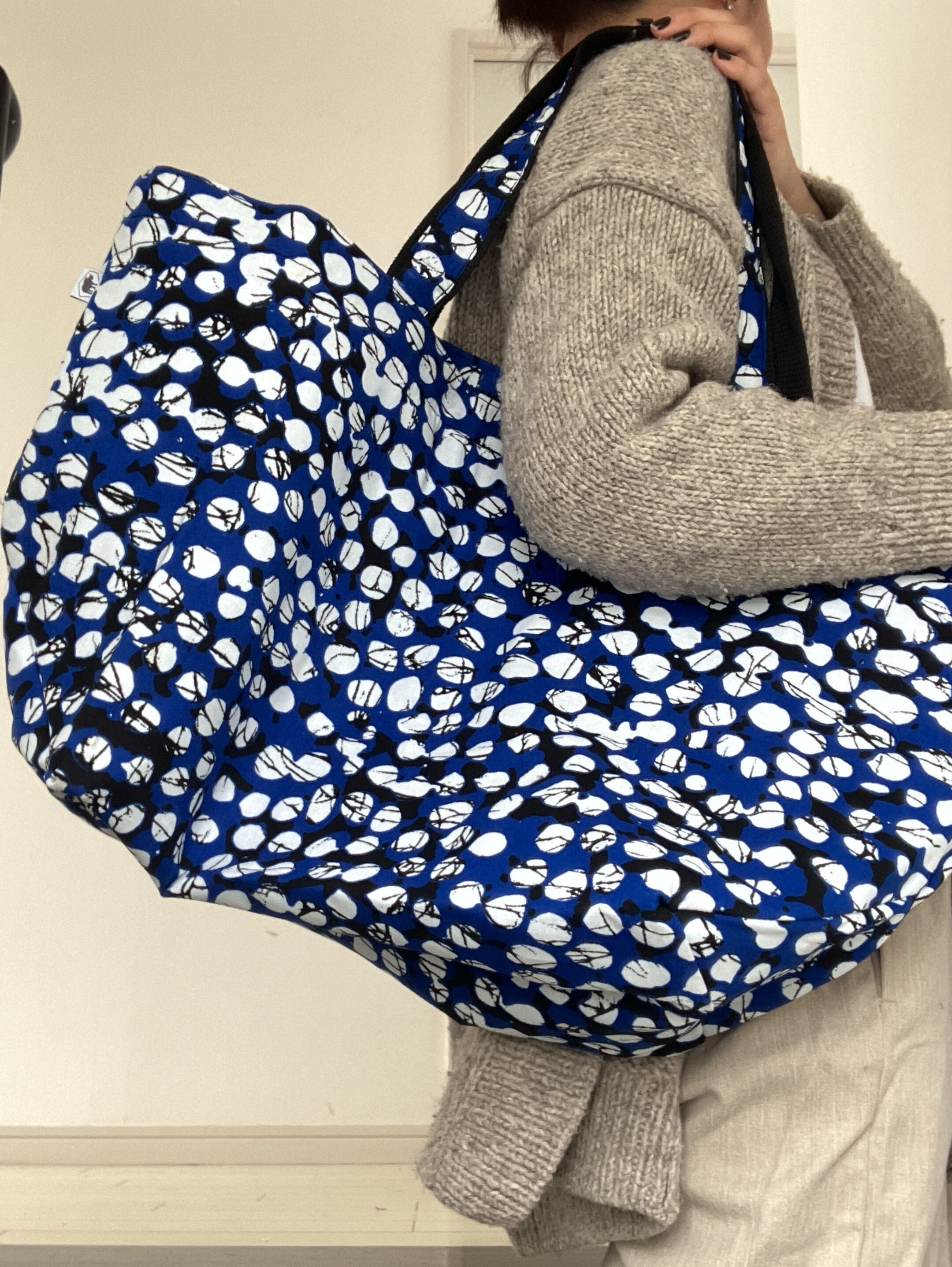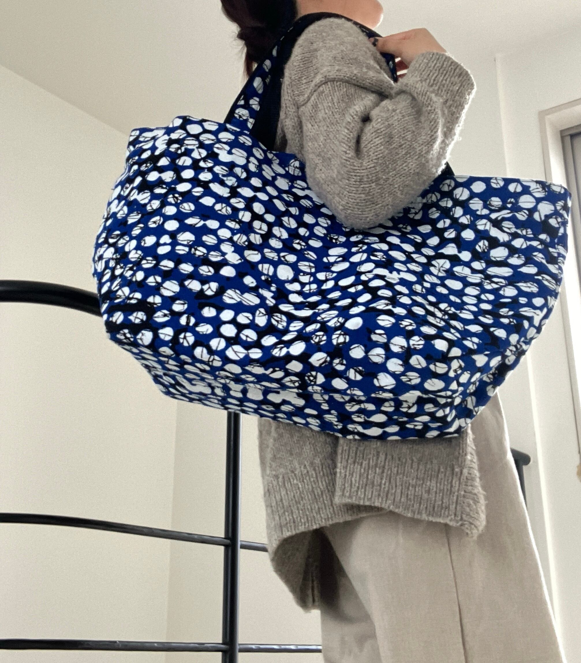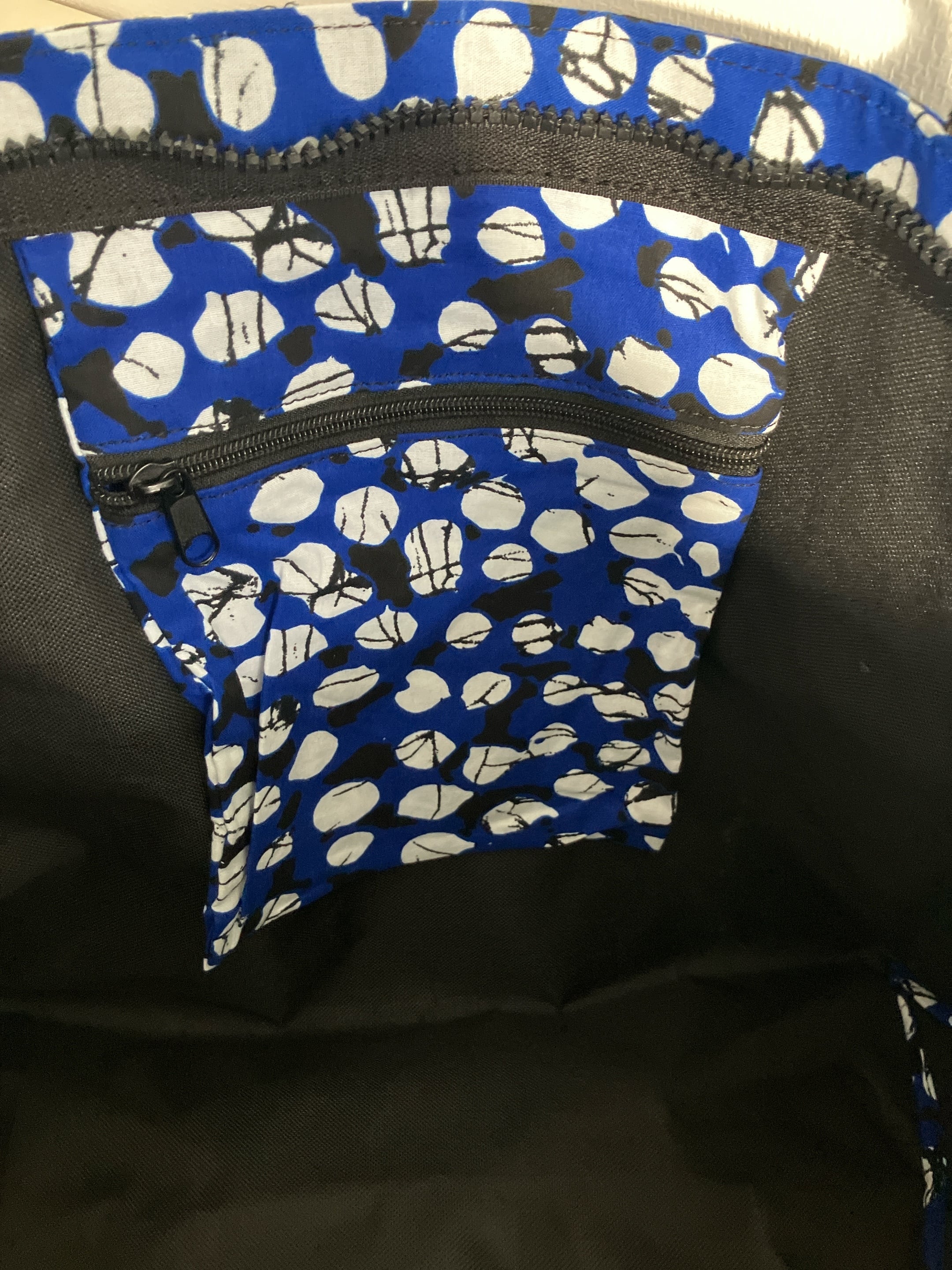 ケニアの首都、ナイロビにある孤児院で作った舟型タイプのビックトート。強く、しっかりとした生地にするために、裏地は強度がありながら汚れに強い素材を使用。また、たくさんの荷物を入れて、グイグイ閉めても大丈夫なように、ファスナーは日本で購入した物を取り付けています。ビックファスナーでグリップが握りやすいのも特徴。 内側にはジップのついた安心ポケットが1つついています。 size W63cm ✖︎ H35cm ✖︎ まち18cm ハンドル56cm