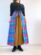 アフリカ布には珍しい、白と黒を基調としたモノクロのスカートたちでお作りしていたビリスカート。今回はそのビリスカートをかわいいチェックのマサイシュカで作りました。マサイシュカ部分はアクリルなのでとってもあったかいのです。静電気予防のインナーもつけました。