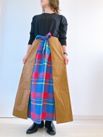 リバーシブルになっていて、単色の布を外にしても、マサイシュカを外にしてもどちらでもかわいいスカート。色をサイドにしたり、後ろにしたり、使い方次第で色々な顔を見せてくれるスカートです。
